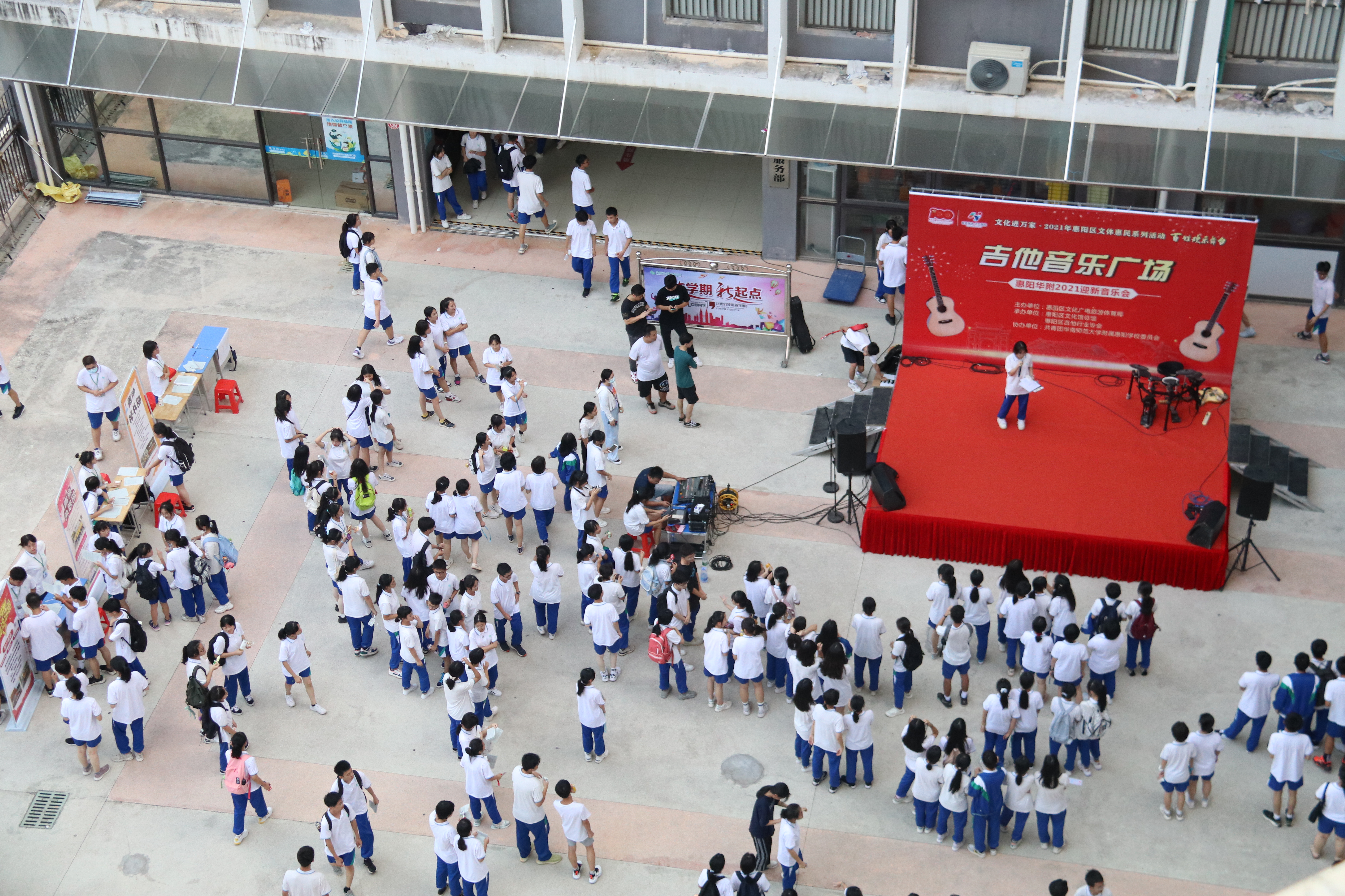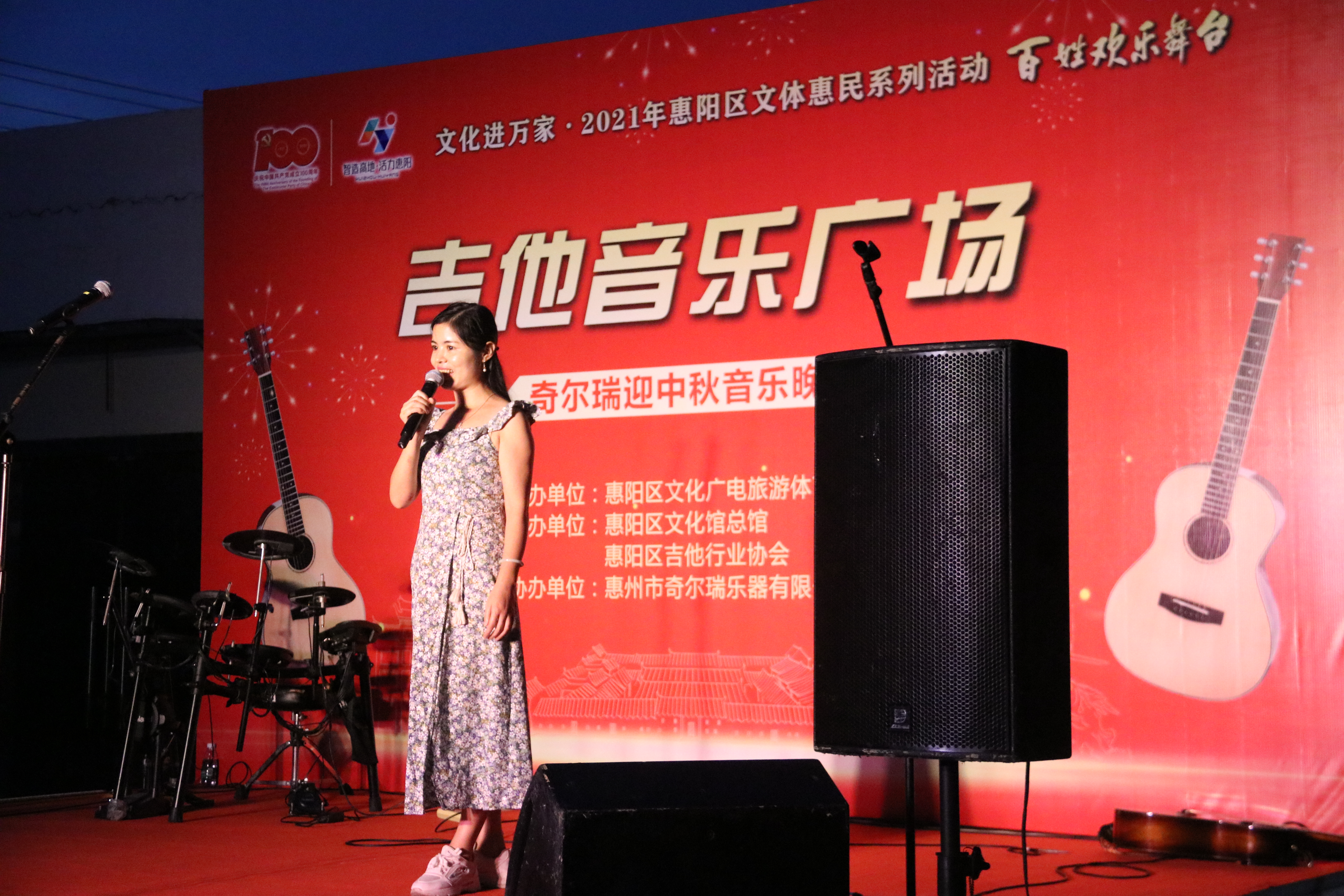 吉他音乐广场第三季度共举办10场活动,分别在惠阳大剧院广场、消防救援大队、社区、学校、企业等不同地点开展,合计演出节目共140个,演员168人,演出时长共930分钟,观众人次约1780.
