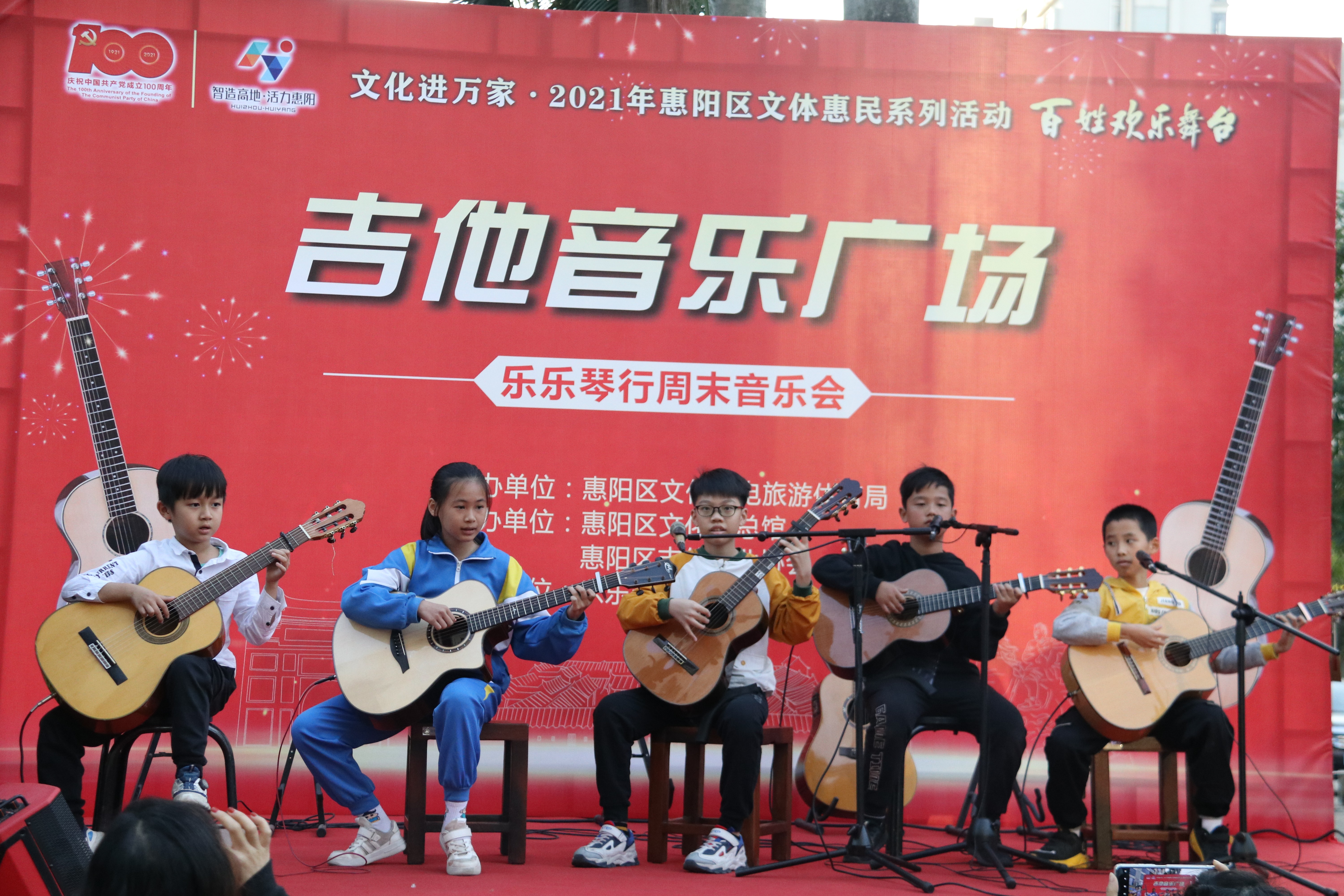 吉他音乐广场第四季度走进教育机构共举办6场活动,分别在惠阳各教育基地、培训机构开展,合计演出节目共113个,演员172人,演出时长共625分钟,观众人次约2935.
