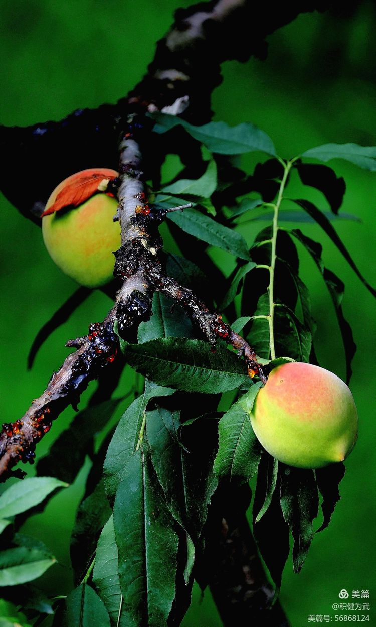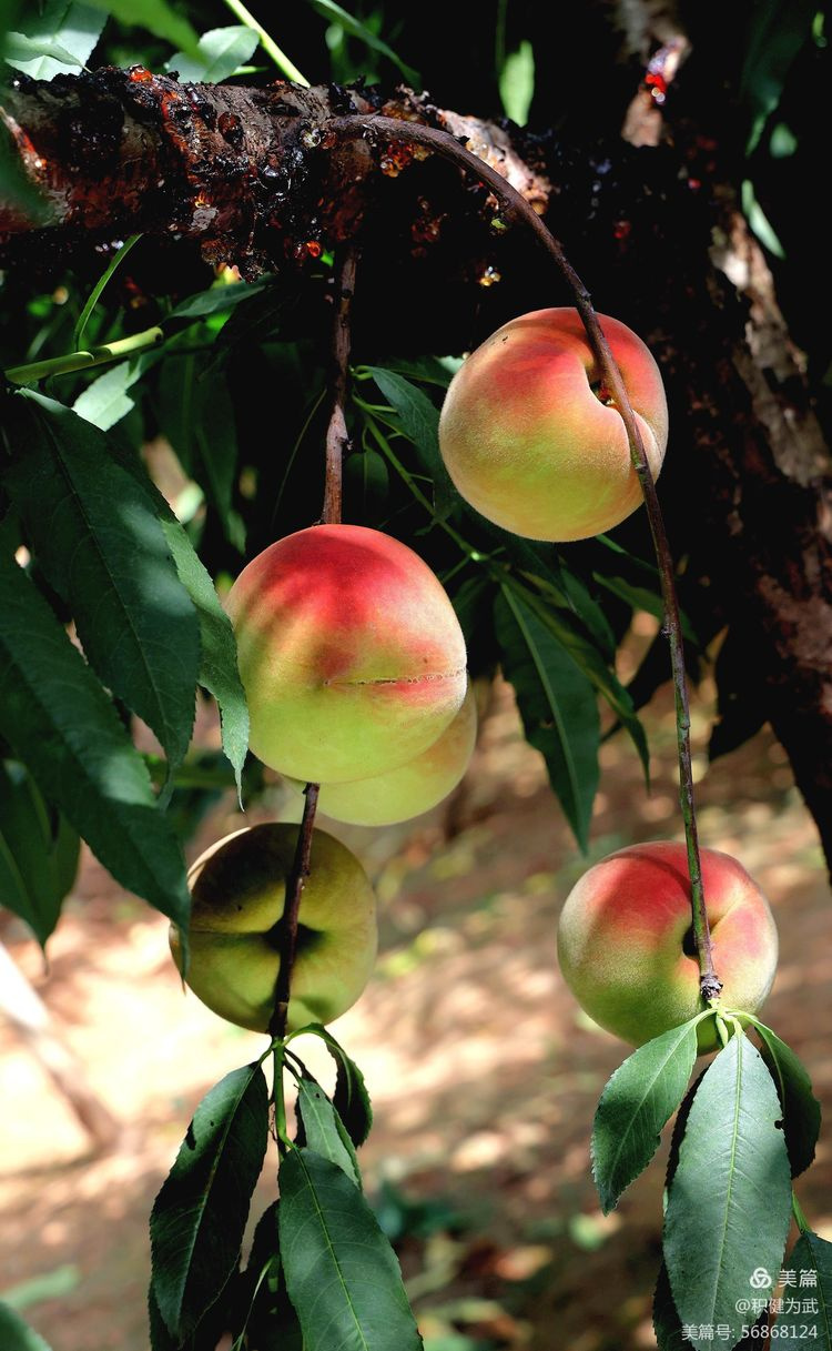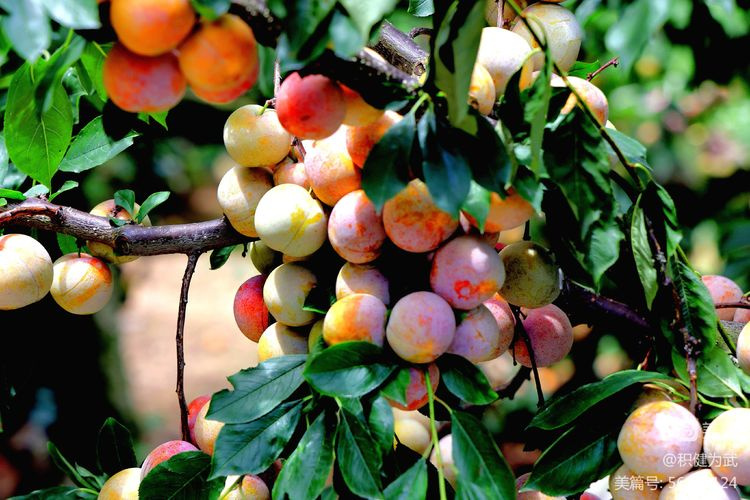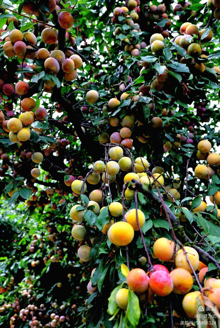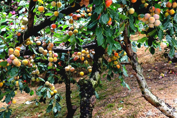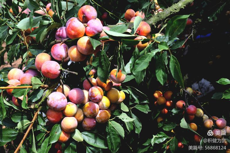 拍摄中在桃林里意外发现许多挂果累累的李子树,一大片红彤彤、沉甸甸的李子挂满枝头。与果实累累的鹰嘴桃遥相呼应,相映成趣。真不愧为“挂果累累,桃李飘香”之壮美。