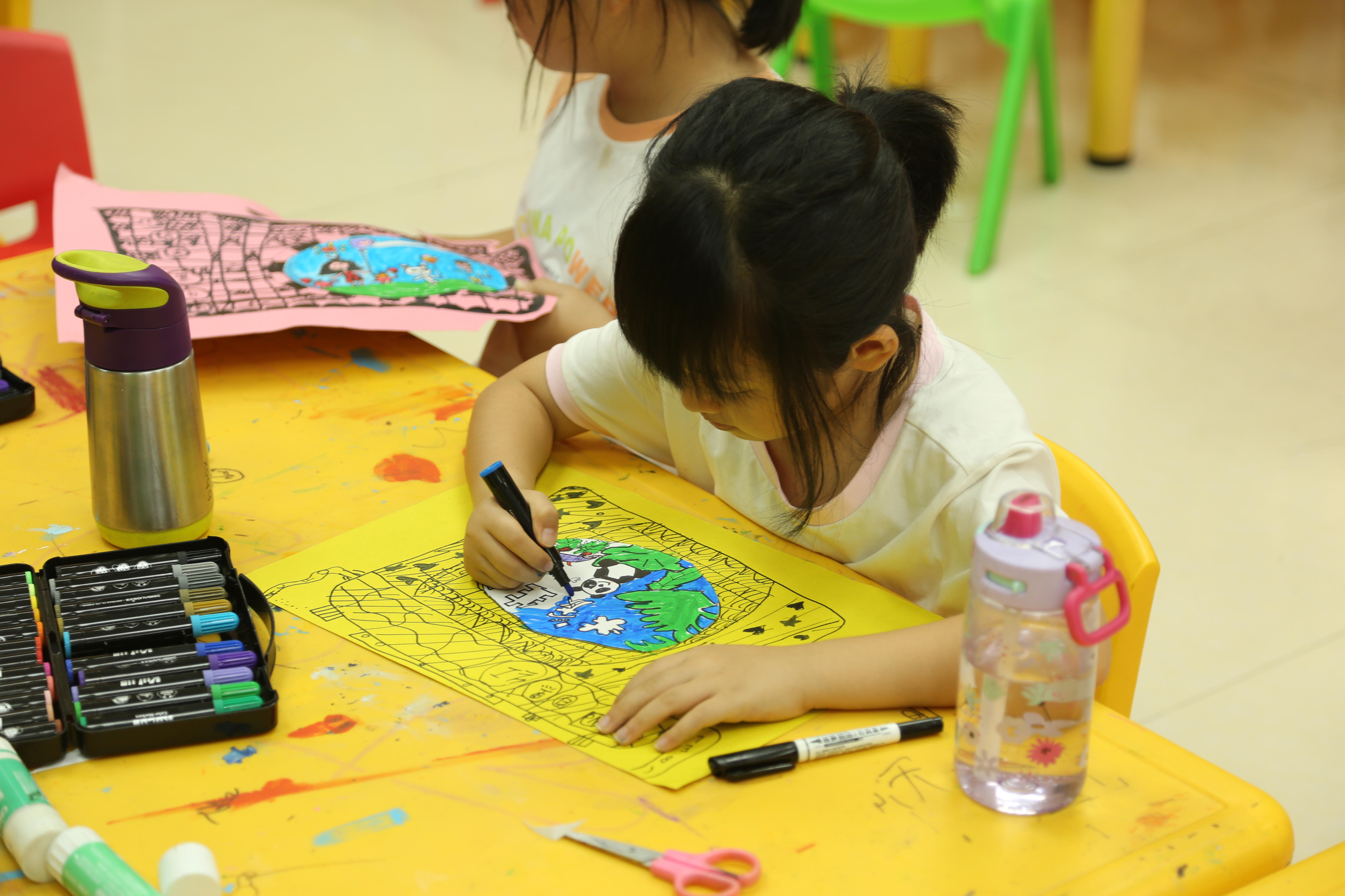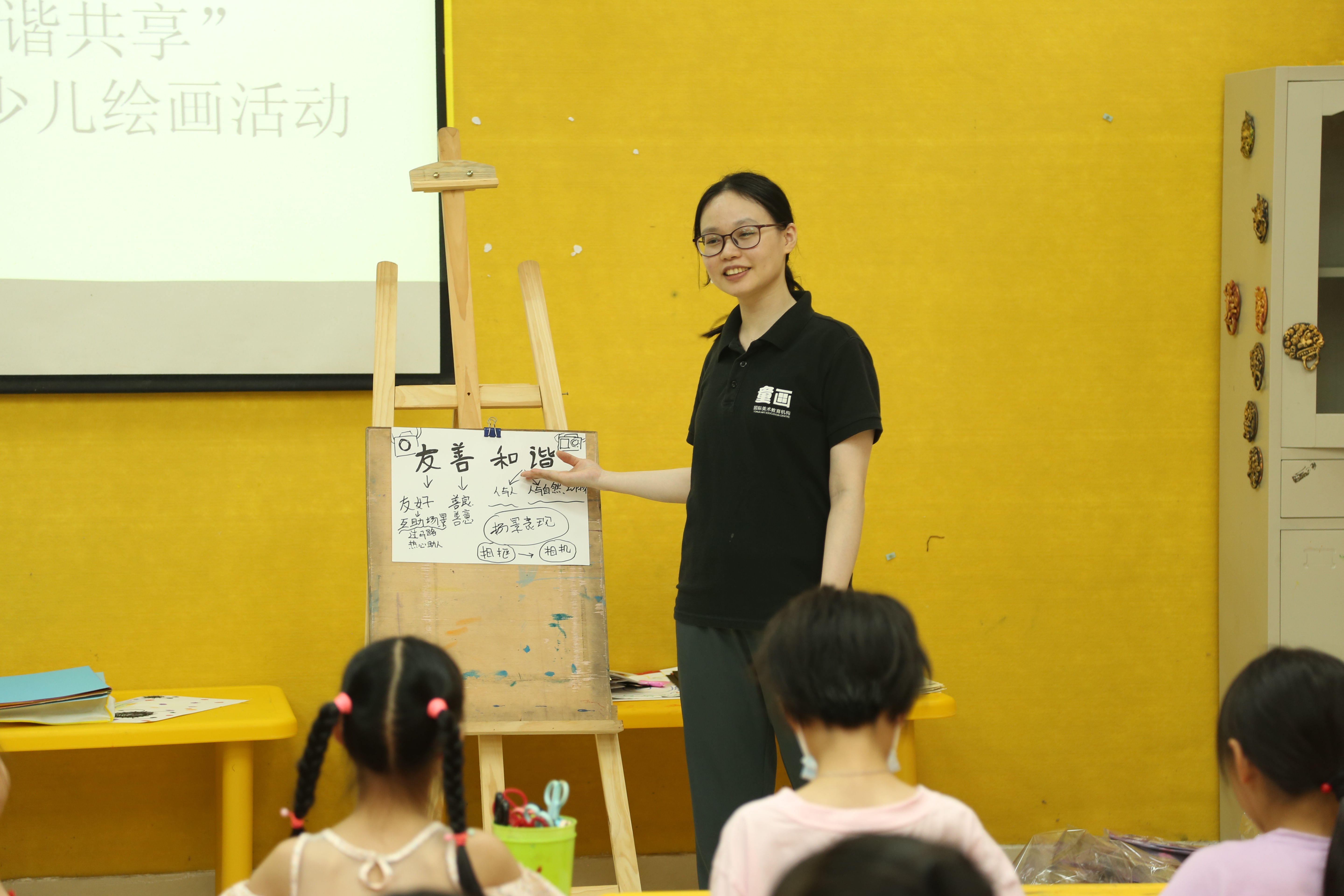 活动现场由美术老师先对孩子们讲解社会主义核心价值观——友善和谐的具体内涵和意义,让孩子们对社会主义核心价值观有初步的认识。现场结合互动环节,老师还进行了趣味生动的关于和谐友善的问答游戏,孩子们积极参与回答,引导孩子们的画作创作思维进行绘画,孩子们采用丰富的色彩,运用多种表现形式,在纸上尽情涂画,一张张画作跃然纸上,使社会主义核心价值观——友善和谐意义植入每个孩子的心田。