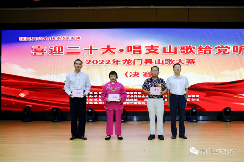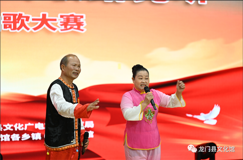 龙门山歌是我县历史悠久的文化遗产,是惠州市第六批非物质文化遗产项目。为迎接中国共产党第二十次全国代表大会的胜利召开,激发广大群众热爱党、热爱祖国、热爱社会主义的热情,不断满足人民群众对文化生活的新需求、新期待,为更好地保护和传承我县的龙门山歌,培养、锻炼和挖掘新一代龙门山歌的接班人,9月5日,由中共龙门县委宣传部指导,龙门县文化广电旅游体育局、龙门县文学艺术界联合会主办,龙门县文化馆总馆、龙门县文化馆各乡镇(街道)分馆承办的“喜迎二十大•唱支山歌给党听”—龙门县山歌大赛在县文化馆一楼小剧场举行。