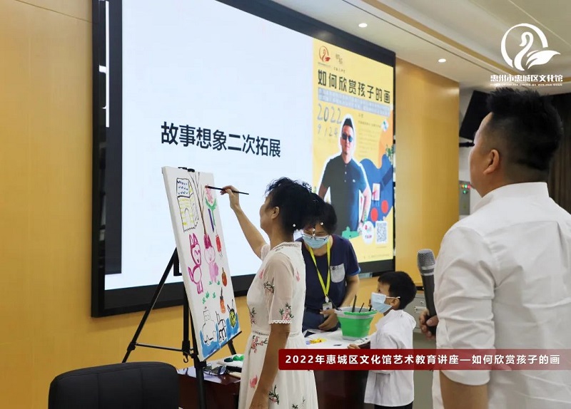 2022年9月24日下午,惠城区文化馆主办、惠州市梵高画院承办的鹅城公益大讲堂,邀请油画艺术家、梵高画院院长马楚为市民分享《如何欣赏孩子的画》。马楚在讲座中与大家分享了欣赏孩子的画的七个角度、如何正确引导孩子学绘画的兴趣、艺术家进行创作的思维方法等话题,并通过现场PBL讨论与即兴创作的方式与听者互动。