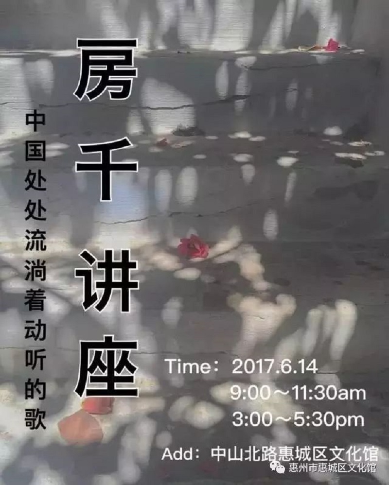 —— 著名词作家房千六月十四日做客惠州讲述创作的故事