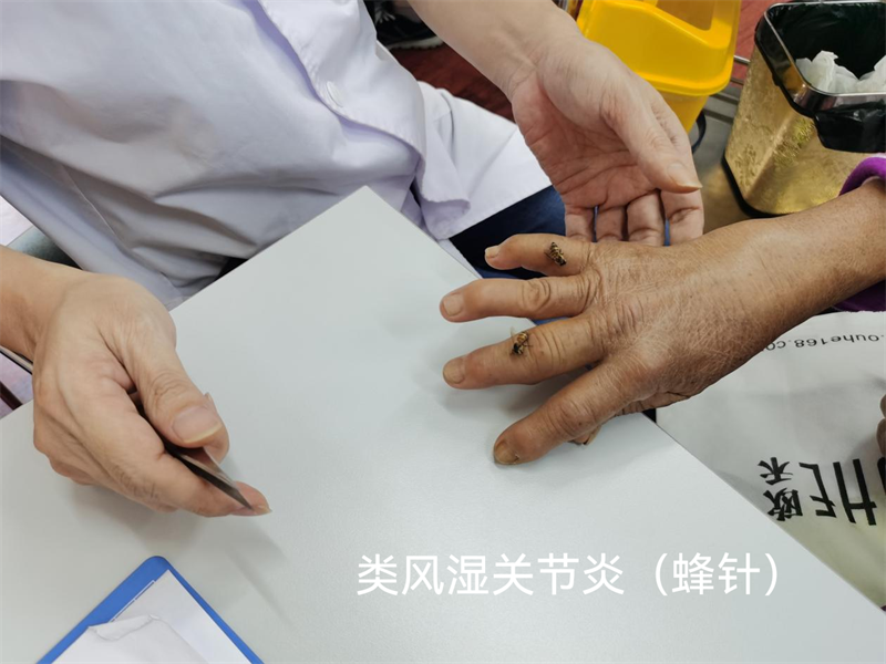 自然蜂疗(蜂针与蜂毒药蜡)是通过瑶族祖先们的指药传授、指症传经方式,传承至今。其作用通过蜂针直刺法(蜜蜂疗法之一种)加上《瑶医打药蜂灸外敷膏》结合治疗癌症、手足皲裂、口唇爆裂、跌打骨折、风湿病等病的效果,历来得到广大患者的公认。大量的临床验证还表明,其功效还能对一些疑难杂症疗效显著,更受到患者的青睐。