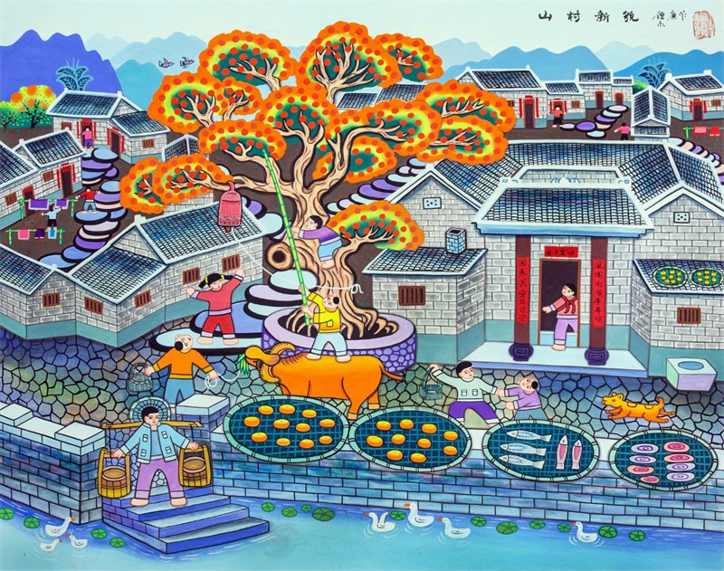 农民画画家们将质朴的感情尽情地泼洒于尺素之上,一幅幅描绘传统农业与现代农业、传统文化与现代文明交相辉映的瑰丽画卷,就是一首首饱含乡音乡韵的时代颂歌。