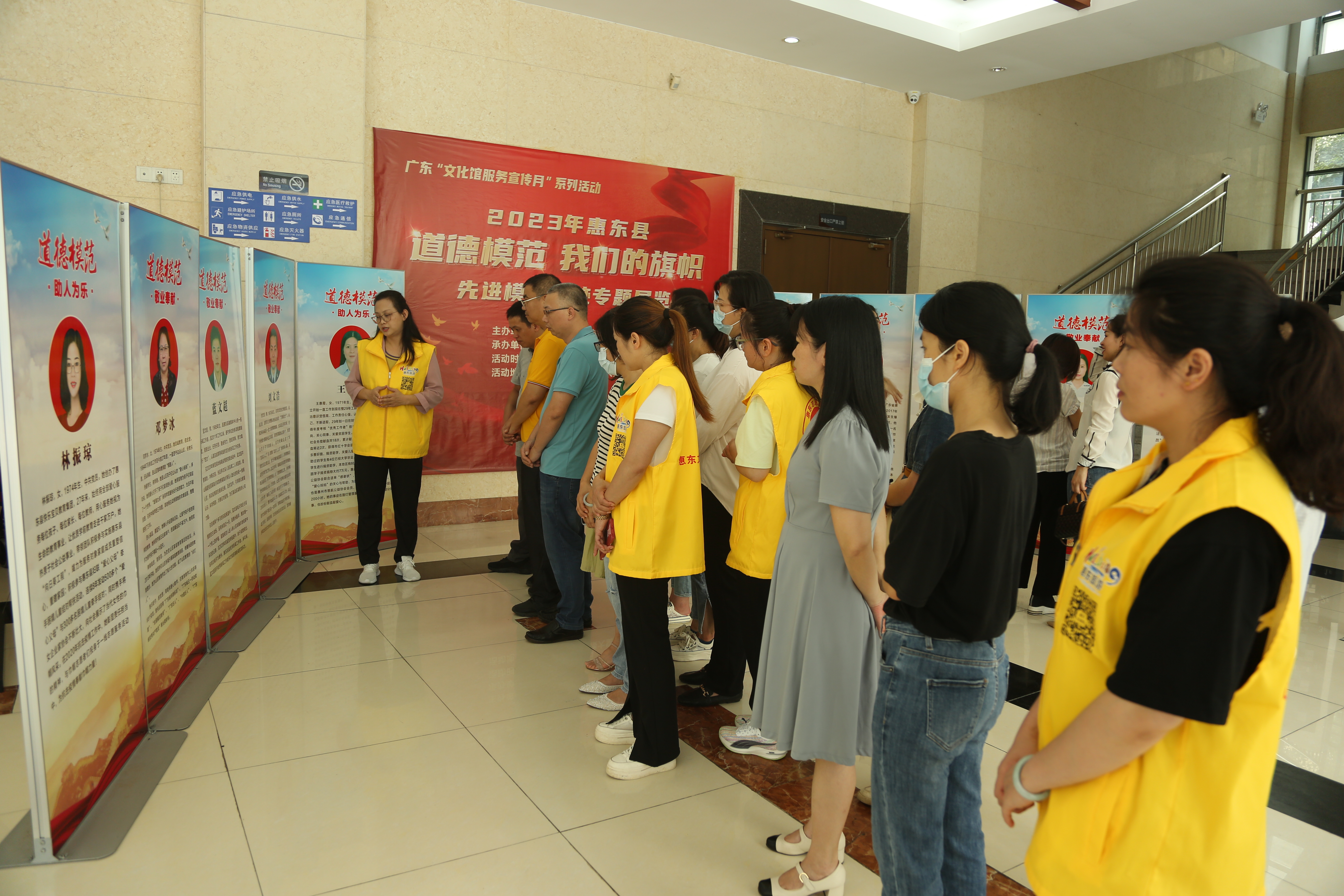 2023年5月18日,由惠东县文化广电旅游体育局主办,县文化馆承办的2023年惠东县“道德模范·我们的旗帜”先进模范事迹专题展览在县文化馆一楼大堂举行。
