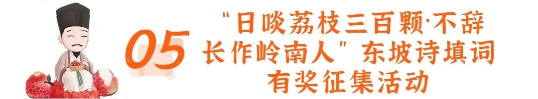 活动内容:东坡寓惠写下名诗《惠州一绝/食荔枝》,其中“日啖荔枝三百颗”写出了东坡因荔枝爱上岭南,从此“不辞长作岭南人”。有奖征集活动目前已通过省、市媒体平台发出两项话题征集活动:以“因什么爱上岭南”为话题,征集粉丝在推文下方填写“不辞长作岭南人”上联内容;以“狂炫荔枝三百颗会发生哪些趣事”为话题,征集填写“日啖荔枝三百颗”下联内容。点赞数最多的评论将获评“最具人气奖”并颁发荣誉证书;以动画、漫画等方式创新填词的,将有机会获评“创意填词奖”并奖励相应奖金。