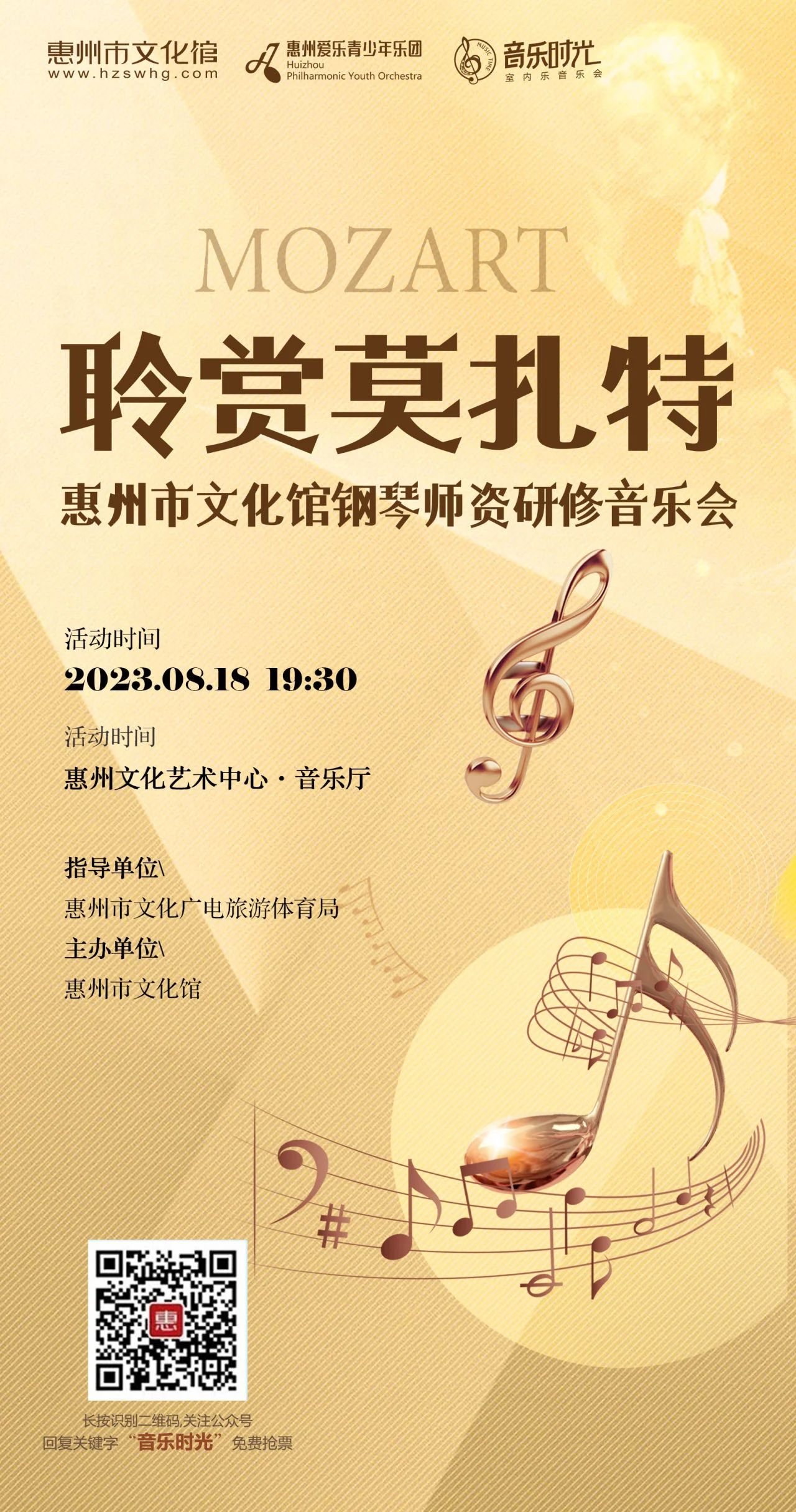 他,是欧洲最伟大的古典音乐作曲家和演奏家之一,也是维也纳古典乐派的代表人物。除了古典音乐的杰出大师外,更是人类历史上极为罕见的音乐天才,素有“音乐神童”之称,他就是莫扎特。本场音乐会以惠州市文化馆钢琴师资研修班的优秀师生们为大家呈现一场精彩绝伦的莫扎特作品专场音乐会。