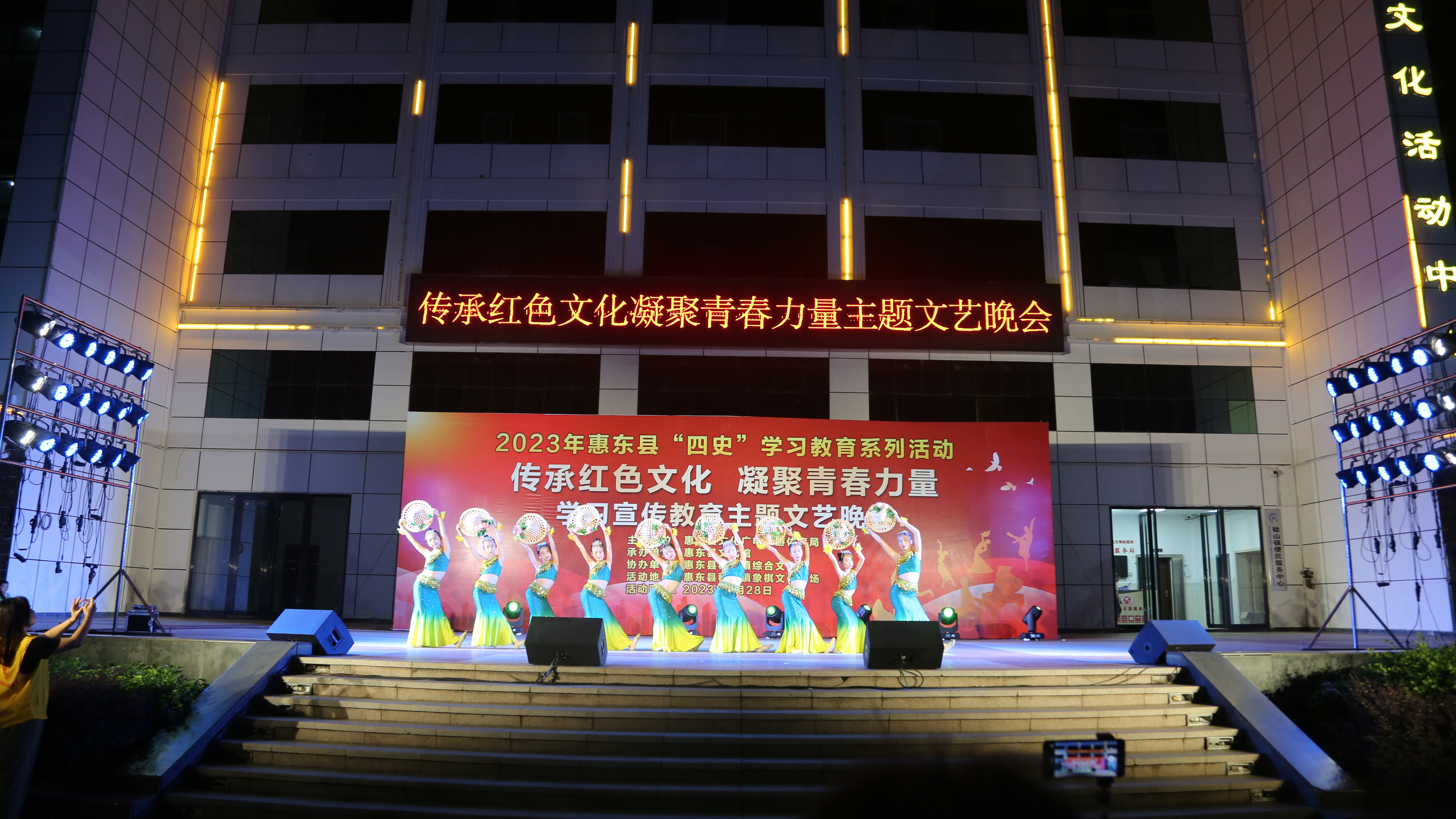 为增强群众爱党意识,引领群众深刻地学习党史,进一步提升党性意识,同时丰富群众的精神文化生活,引导群众“听党话,感恩党,跟党走”。 8月28日晚,由惠东县文化广电旅游体育局主办,惠东县文化馆承办,惠东县稔山镇综合文化站协办的2023年惠东县“四史”学习教育系列活动——“传承红色文化 凝聚青春力量”学习宣传教育主题文艺晚会在稔山镇象棋文化广场举行。