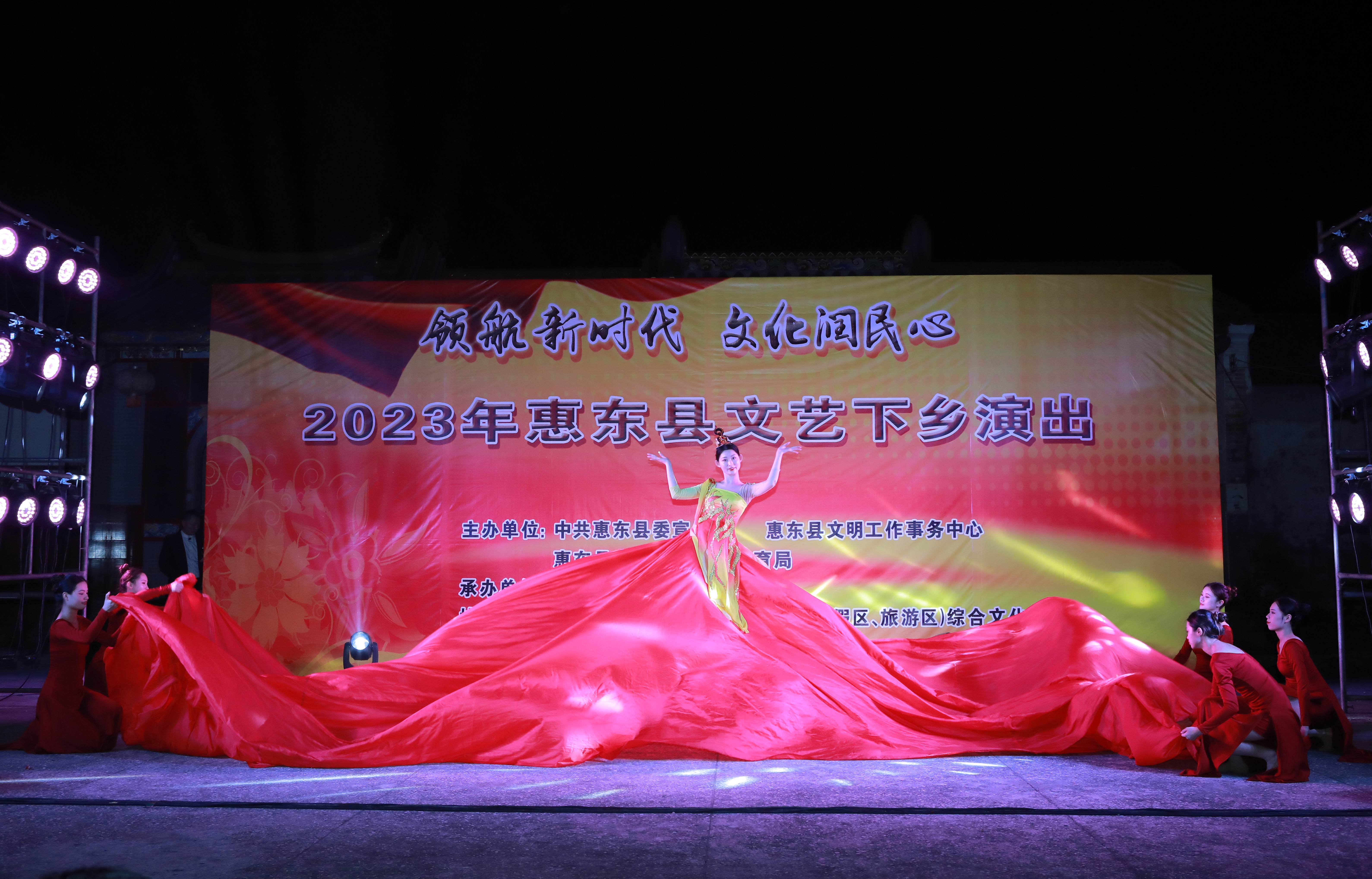 为全面贯彻落实党的二十大精神和习近平新时代中国特色社会主义思想,进一步激发全县人民的爱国热情,引导广大群众继承和弘扬爱国主义光荣传统,坚定跟党走中国特色社会主义道路的理想信念,助力惠东创建全国县级文明城市。由惠东县委宣传部、惠东县文明工作事务中心、惠东县文化广电旅游体育局联合主办,惠东县文化馆承办的主题为“领航新时代 文化润民心”——2023年惠东县文艺下乡演出活动于10月25日在大岭街道池竹村演出。