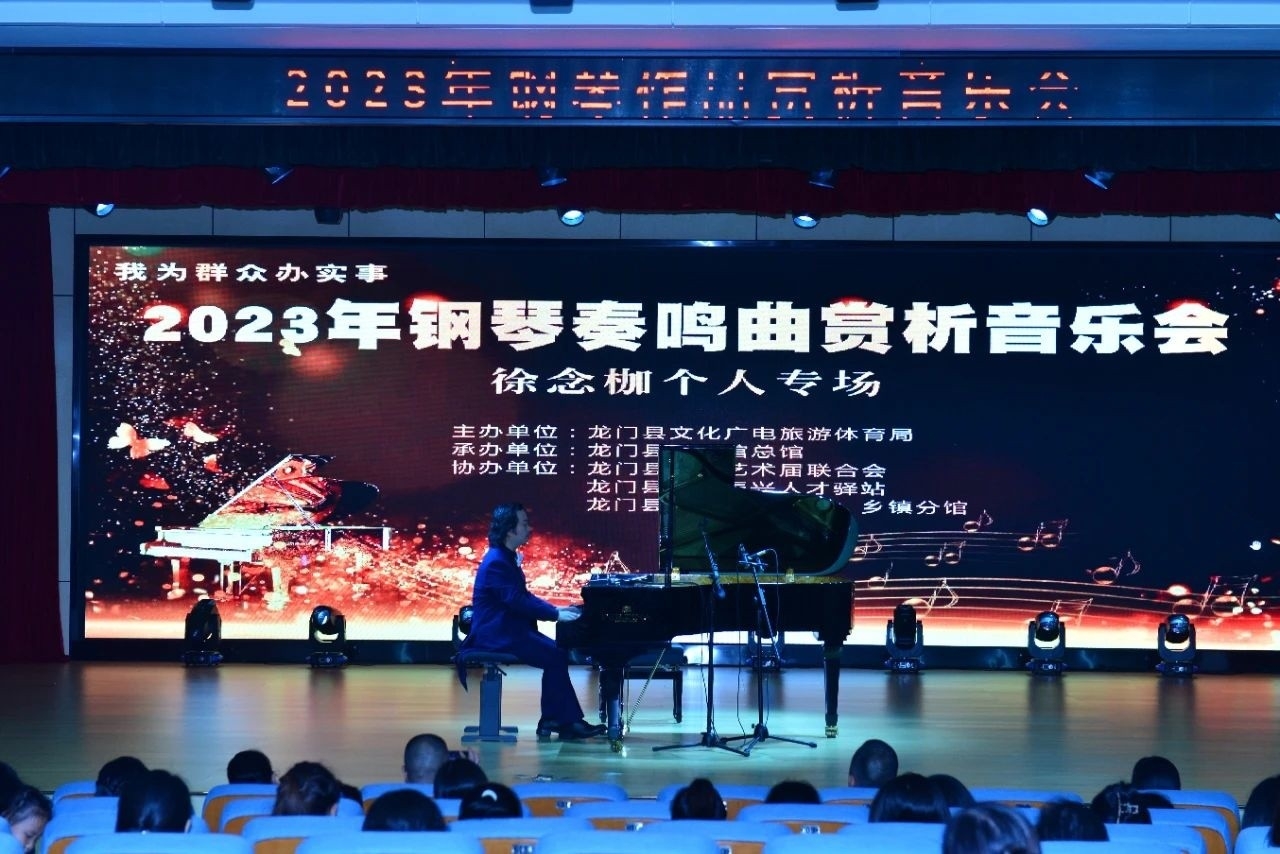 8月16日,“2023年钢琴奏鸣曲赏析音乐会”在龙门县文化馆一楼小剧场举办。此次活动由龙门县文化广电旅游体育局、龙门县文学艺术界联合会主办,龙门县文化馆总馆承办,龙门县乡村振兴人才驿站、龙门县文化馆各乡镇(街道)分馆协办,由比加学派创立者、钢琴演奏家徐念枷老师进行倾情演绎讲解,吸引了我县各乡镇(街道)文化站业务骨干及县内各学校、艺术培训机构教师及音乐爱好者前来,近距离地与高雅音乐“对话”,享受音乐艺术的魅力。