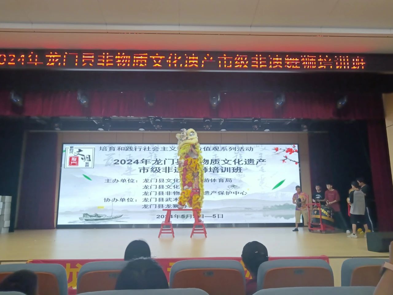 为进一步推动和普及舞狮传统文化,丰富我县青少年的假期生活,发掘更多对舞狮传统文化感兴趣的爱好者,让他们在锻炼身体的同时,学习体会中国传统文化的精髓,5月2日至5月5日,由龙门县文化广电旅游体育局、龙门县文化馆、龙门县非物质文化遗产保护中心主办,龙门县武术协会、龙门县龙狮协会协办的2024年龙门县非物质文化遗产市级非遗项目舞狮培训班,在县文化馆一楼小剧场举办。活动邀请经验丰富的舞狮传承人、教练进行授课,吸引了我县20余名青少年参加。
