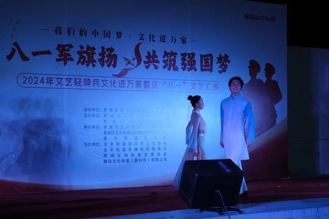 2024年8月1日,为庆祝中国人民解放军建军97周年,一场精彩纷呈的“八一军旗扬 共筑强国梦”--2024年文艺轻骑兵文化进万家暨庆“八一”文艺汇演在惠城区龙丰街道黄塘广场上演。现场人头攒动,观众们沉浸在一片浓厚的节日氛围中,作为惠城区文艺轻骑兵进万家系列活动的重要一环,本次晚会不仅是一场艺术的盛宴,更是军民情深的见证。