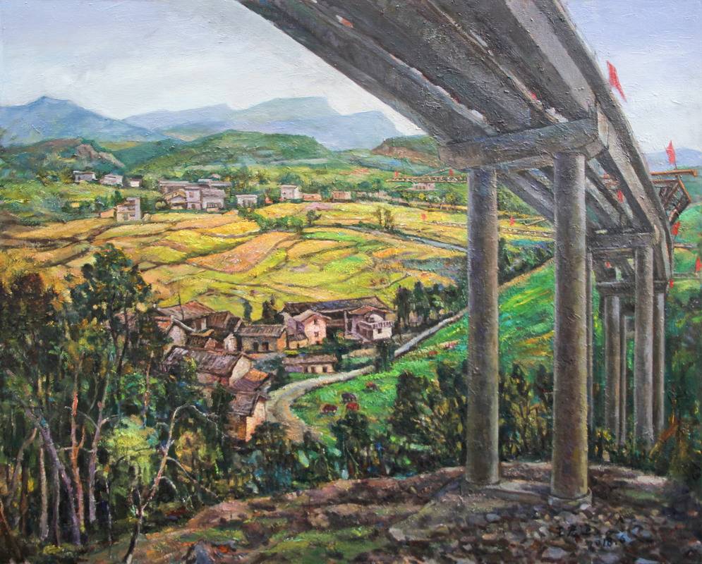 惠州 谢志文 瑶乡初春 110x145cm 油画