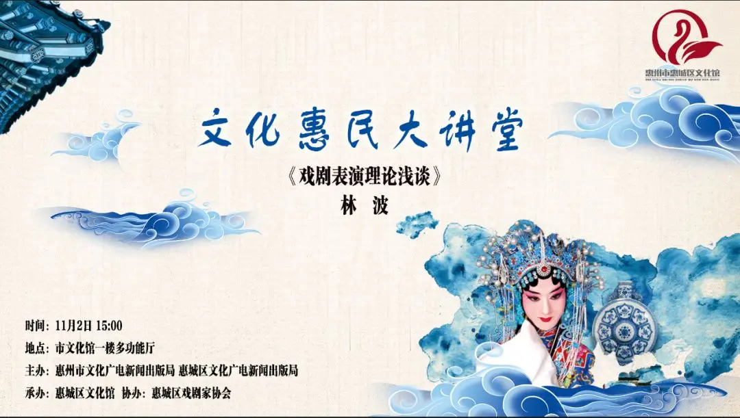 由惠州市文广新局、惠城区文广新局主办,惠城区文化馆承办,惠城区戏剧家协会协办的2018年惠民大讲堂——《戏剧表演理论浅谈》在惠州市文化馆多功能厅成功举办。活动吸引了广大戏剧爱好者的参与,林波老师以生动的语言、丰富的身体表演,令到场的爱好者们受益匪浅,赢得一阵阵掌声。
