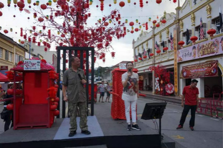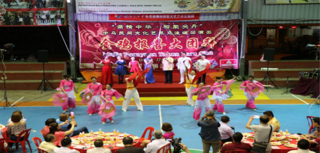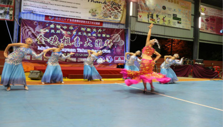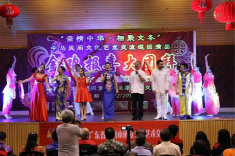 2月17日,应惠州籍彭亨州客家总公会会长、关丹客家公会会长叶运兴的邀请,惠州市侨联群星客家艺术团到关丹开展文化交流活动。关丹淡马鲁市有50万人口,其中华人有16万,集中居住在市区。上午到达后,艺术团成员参观了关丹特色文化园,向当地艺术家学习民族舞蹈;下午,客家山歌歌手陈国忠、青年歌手杜娟和舞蹈演员到社区开展客家山歌、中国舞宣传活动,受到当地华人学生的欢迎;黄红英和古东权老师到关丹客家公会合唱团教唱客家山歌。当晚,市侨联群星客家艺术团和当地惠州籍知名歌手黄赛凤在关丹篮球协会球场表演一场精彩的文艺节目,出席活动的嘉宾有马来西亚拿督沙费、关丹警区主任阿都阿兹沙列、拿督斯里海南会馆青年团张赈琮、拿督曾凤玲、拿督曾玟祯和彭亨州客家总公会会长叶运兴等,李世杰团长代表市侨联向关丹客家公会赠送书画作品“魂牵梦萦家乡水 轻歌曼舞中华情”。关丹客家公会组织300多名华人社团代表观看,周边社区也有200多名本地居民观看演出,当地居民对中国文化非常喜欢,掌声和欢呼声不断,演出结束后围着演员合影留念。