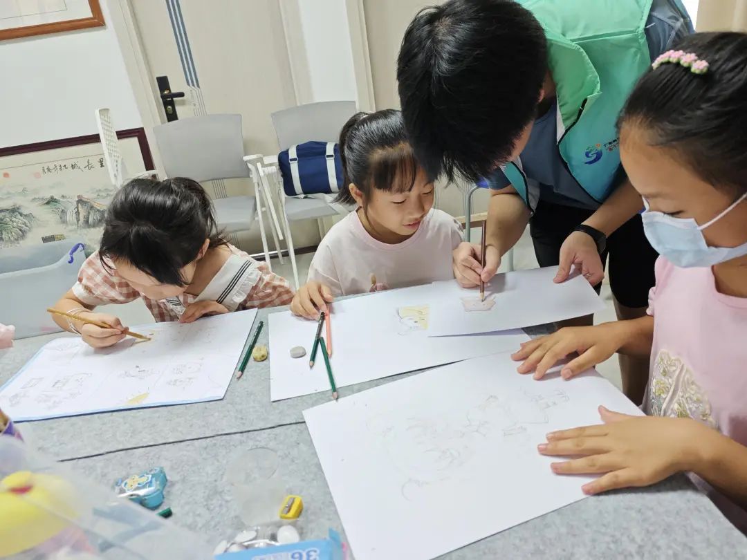 开展艺术素养提升课程—手绘家乡风景:学习描绘稻田、溪流、村落等景观,并引导儿童讲述画作的内容以及意义,加强孩子对家乡文化的热爱。
