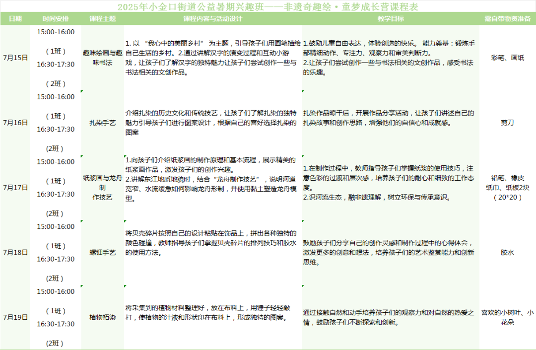 快来加入小金口的暑假班(第二期)吧!
