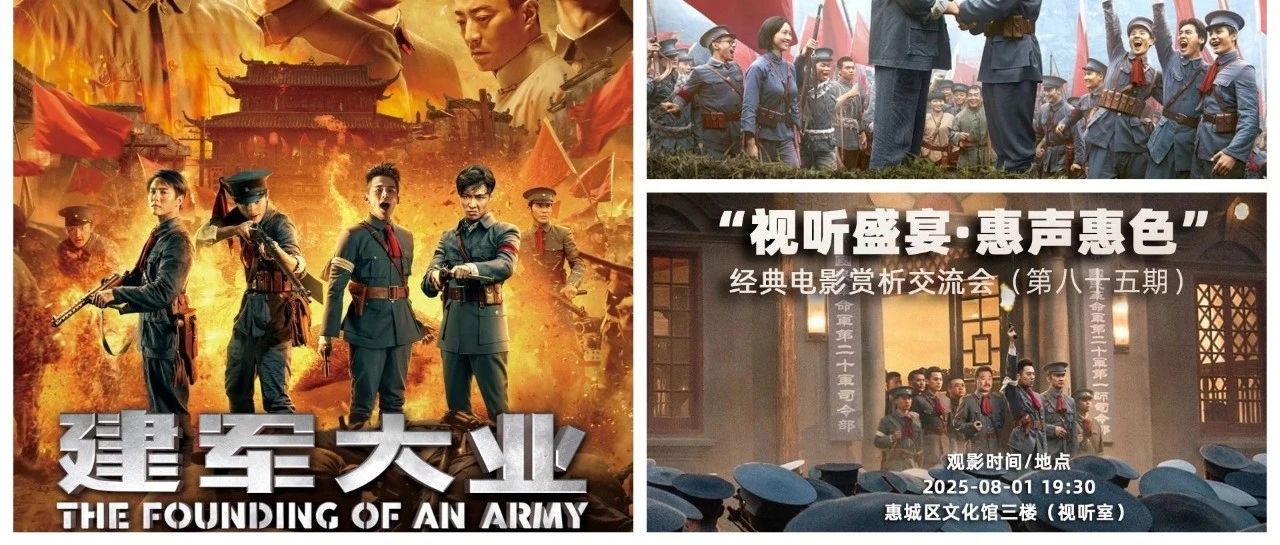 “视听盛宴·惠声惠色”经典电影赏析交流会第八十五期将于8月1日晚举行,开启创建人民军队的征程《建军大业》。
