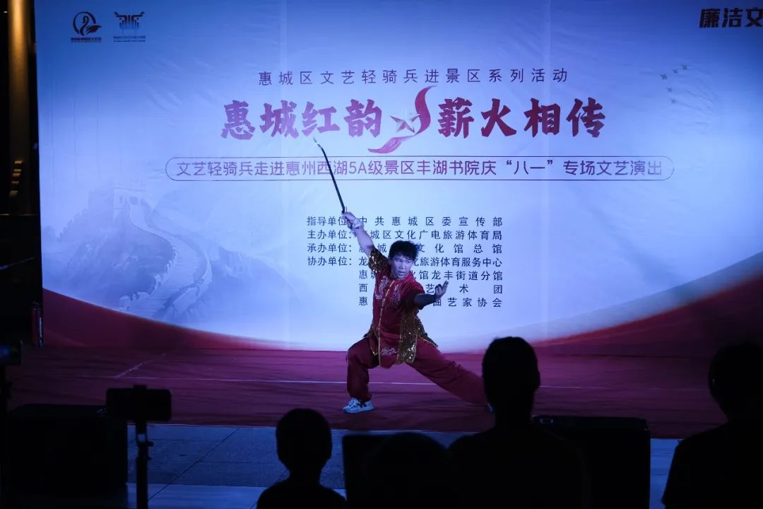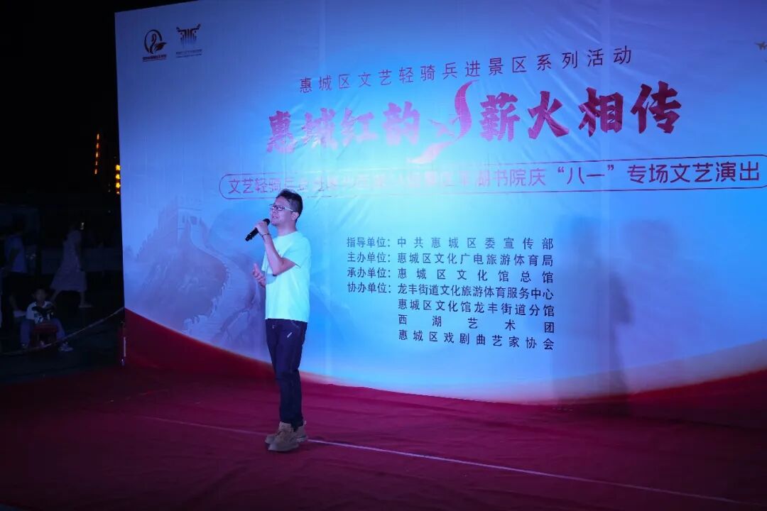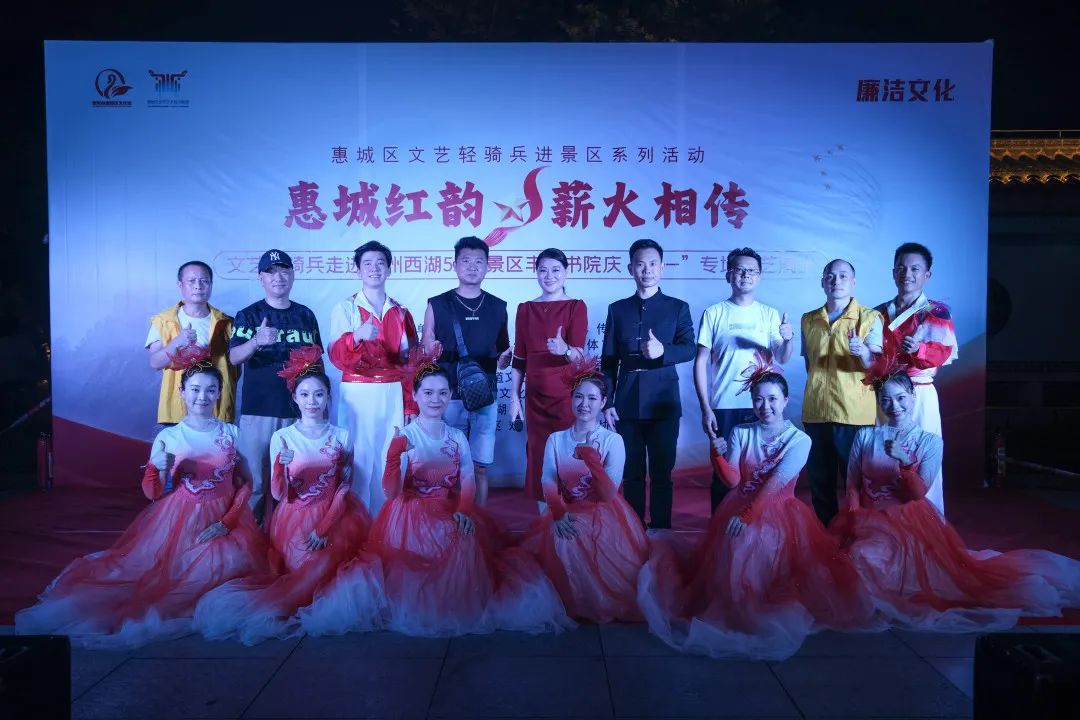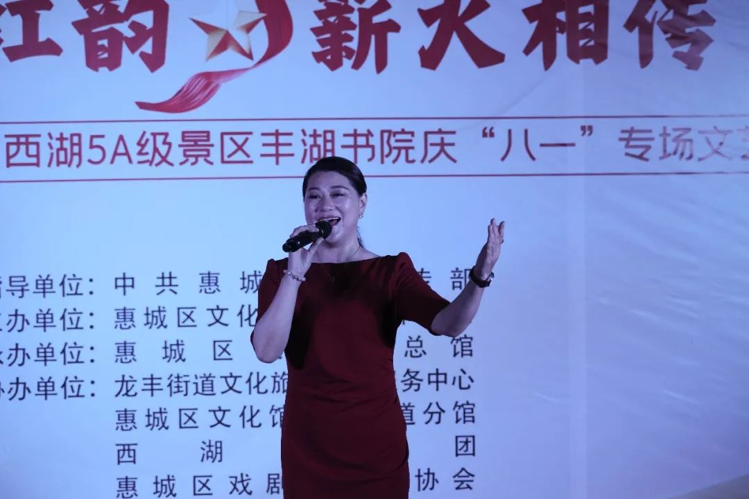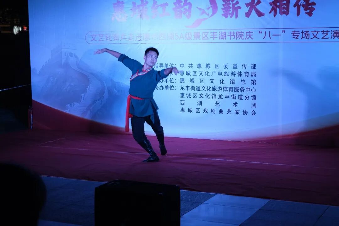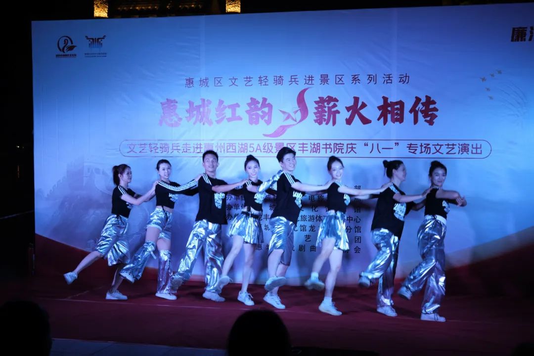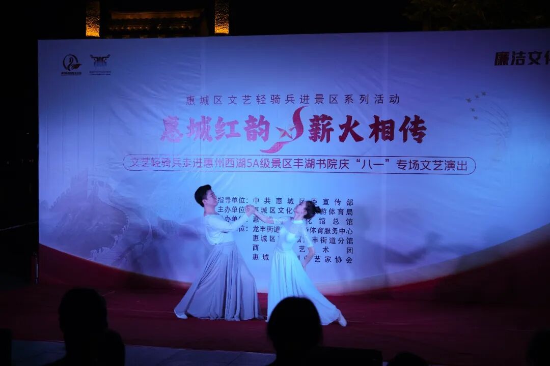 8月1日晚,“惠城红韵·薪火相传”——惠城区庆“八一”专场文艺演出在5A级景区惠州西湖丰湖书院举行。这场由中共惠城区委宣传部指导,惠城区文化广电旅游体育局主办,惠城区文化馆总馆承办,多单位联合协办的文艺盛宴,以艺术之名致敬“八一”,让红色精神在惠城大地熠熠生辉 。