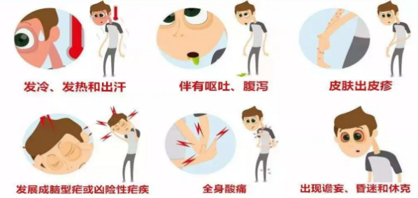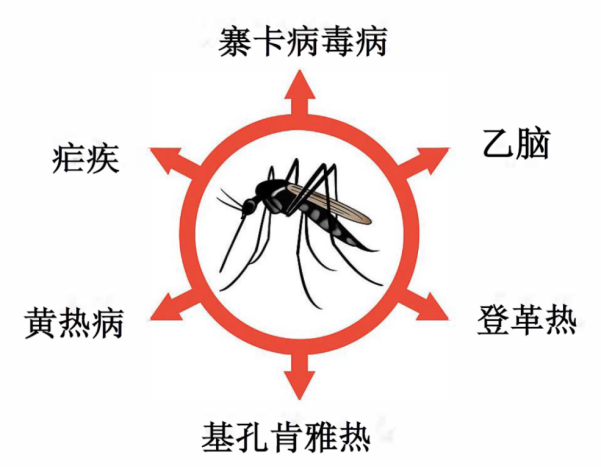 其中最为常见的传染病包括:疟疾、登革热、流行性乙型脑炎、黄热病、基孔肯雅热、寨卡病毒病等。
