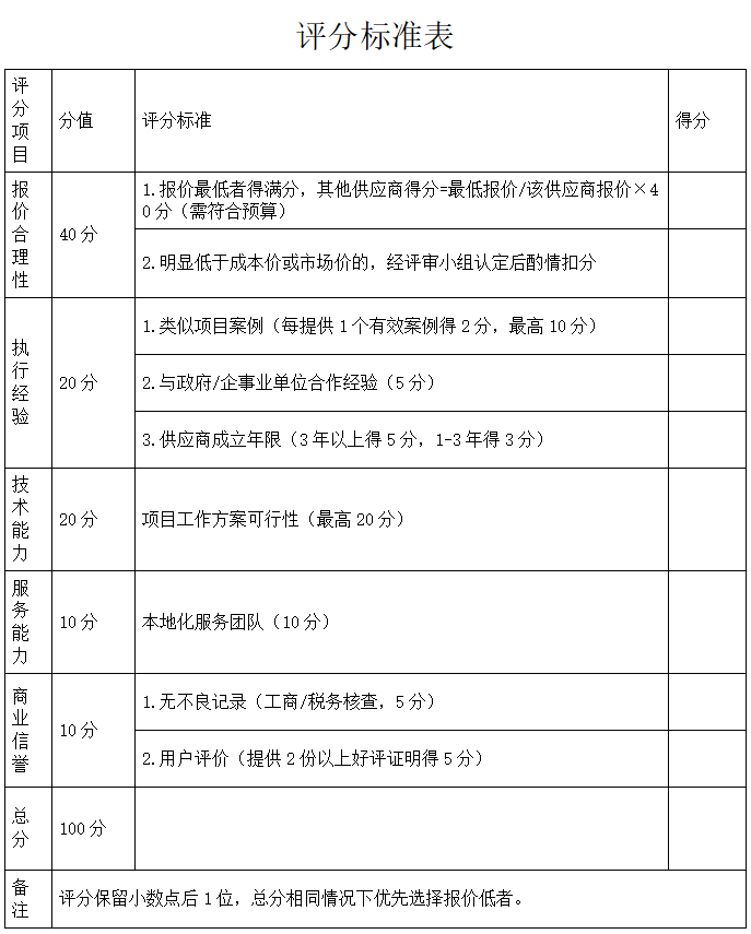 (三)评标要求:综合考虑报价、经验、技术能力、工作方案、信誉等因素,最终确定中选供应商。
