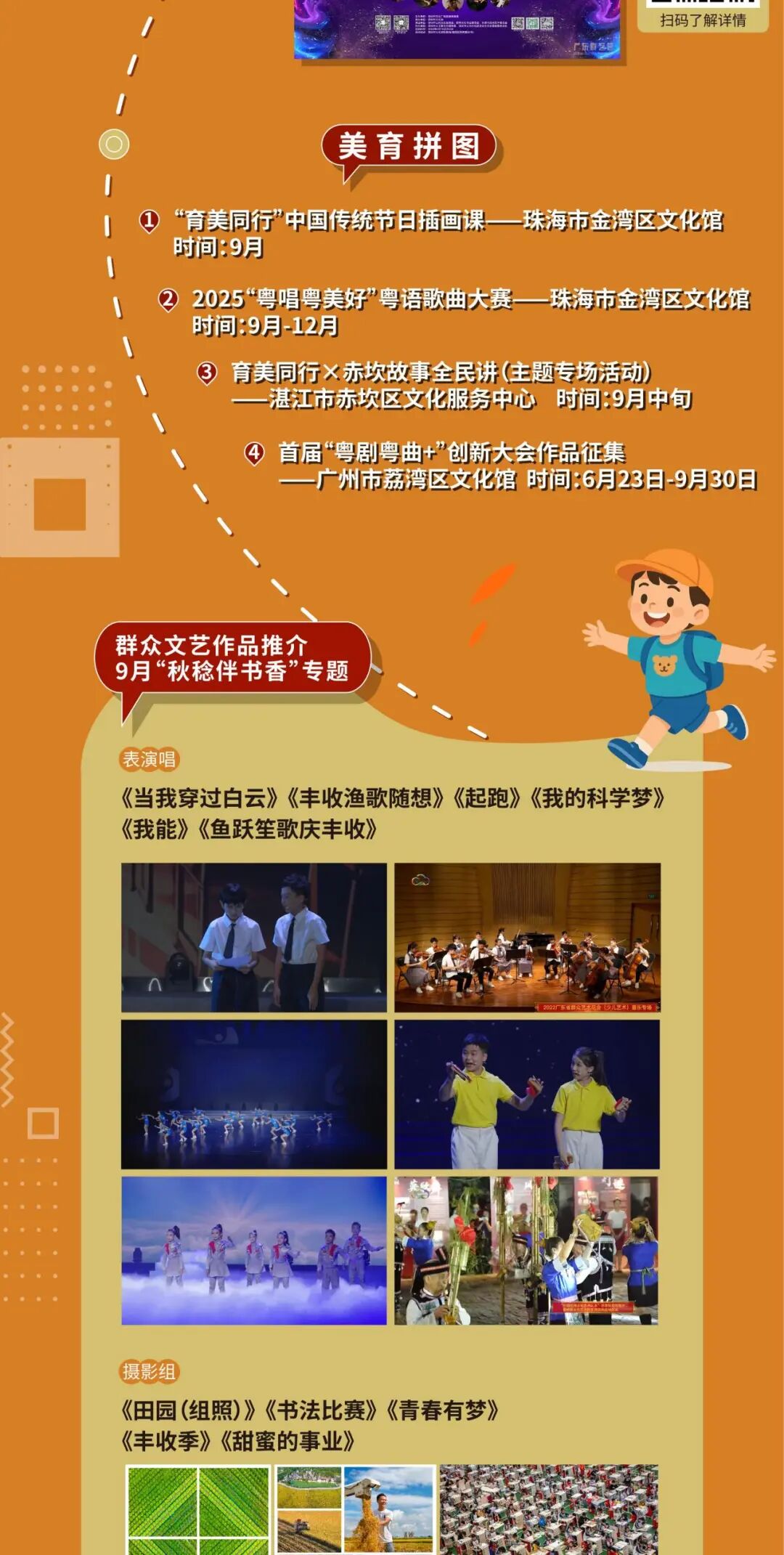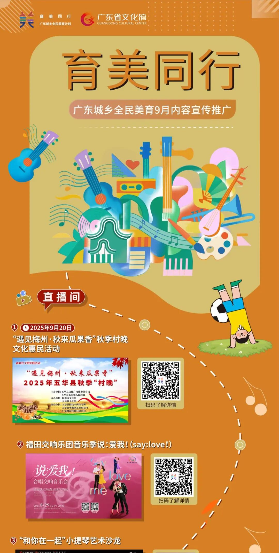 九月,让我们与美同行,在艺术中收获丰盈,在文化中感受温暖。马上点击下方长图,了解更多精彩内容,共同开启一场属于全民的美育之旅!