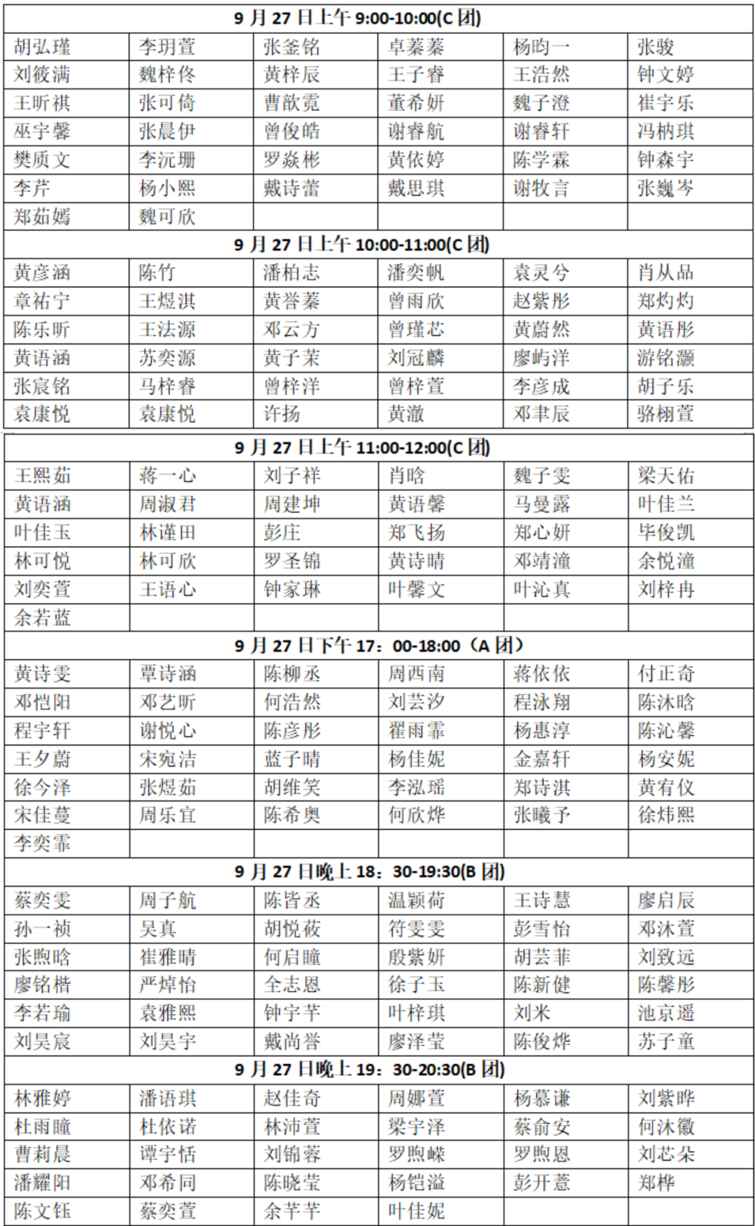 上午9:00—12:00为C团面试时间,下午17:00-18:00为A团面试时间,晚上18:30-20:30为B团面试时间,请考生提前15分钟到面试地点开始签到。
