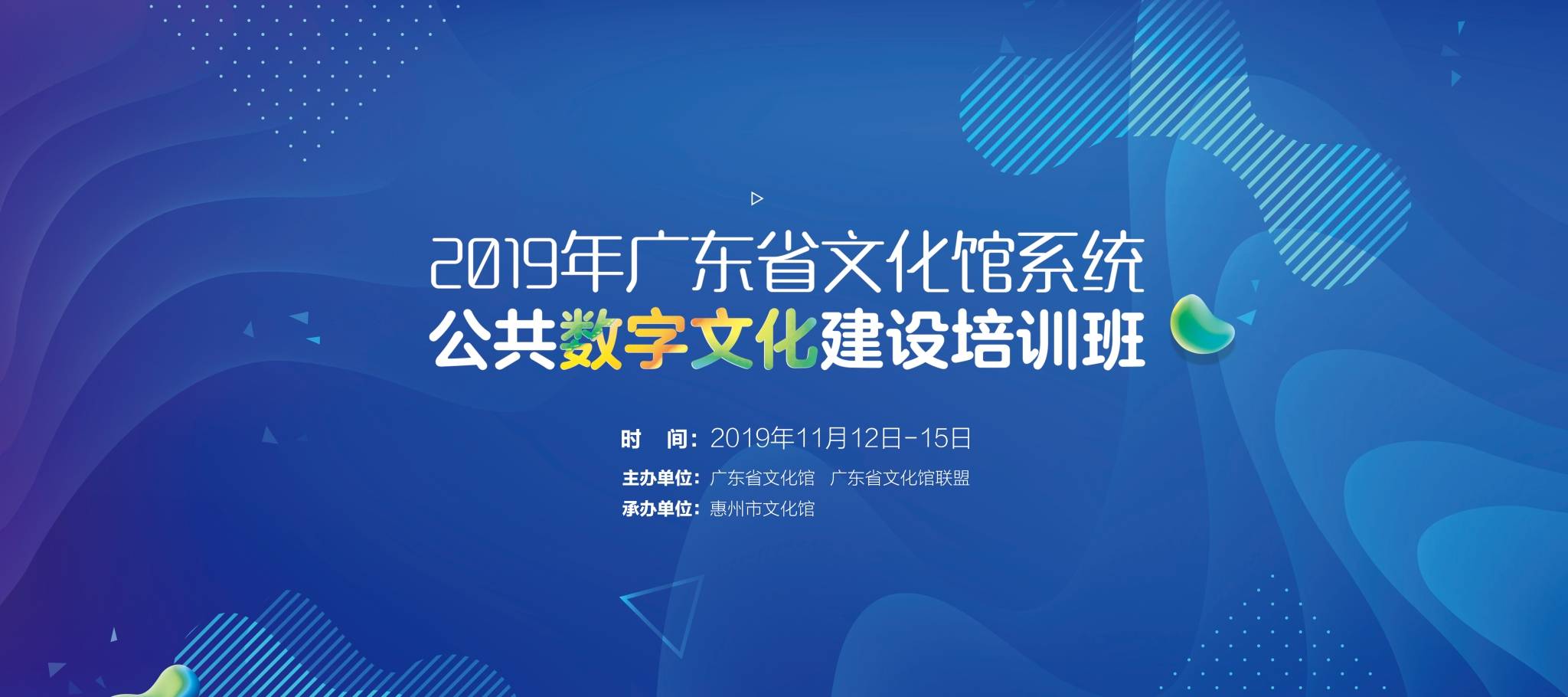 11月13日,由广东省文化馆、广东省文化馆联盟主办,惠州市文化馆承办的“2019年广东省文化馆系统公共数字文化建设培训班”在惠州市文化馆开班。全省21个地级以上市文化馆信息化工作分管负责人、技术骨干和各地市文化馆推荐的县(市、区)从事信息化专兼职人员共105人参加了此次培训。开班仪式由省文化馆信息部主任方崴主持,文化和旅游部全国公共文化发展中心研发推广部副研究馆员范雪、省文化馆副馆长蓝海红等领导出席。
