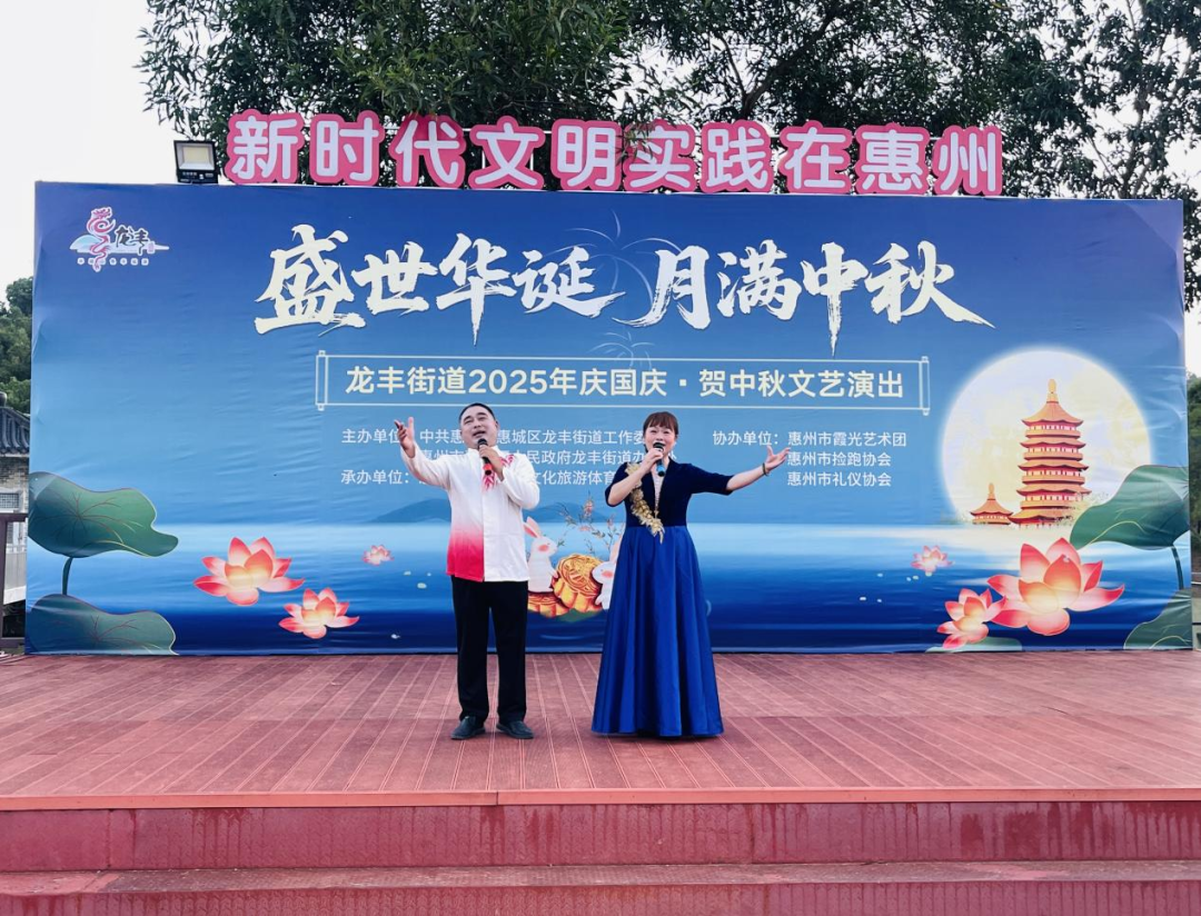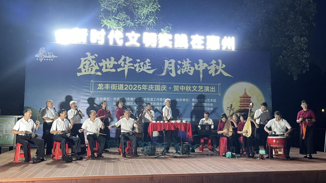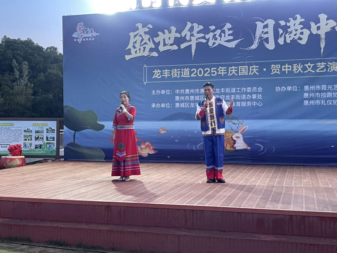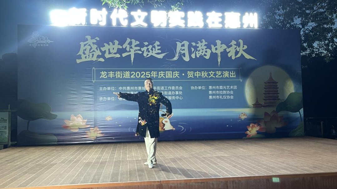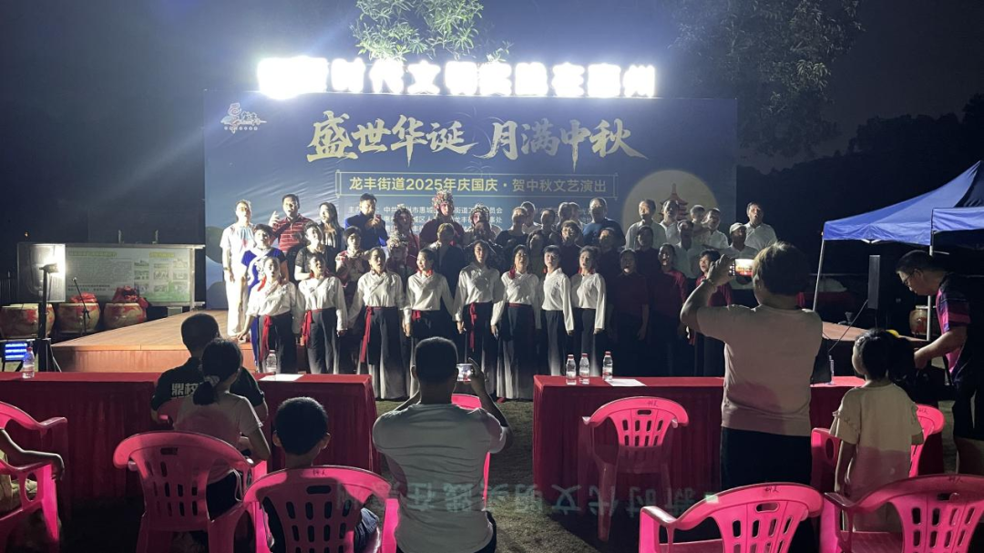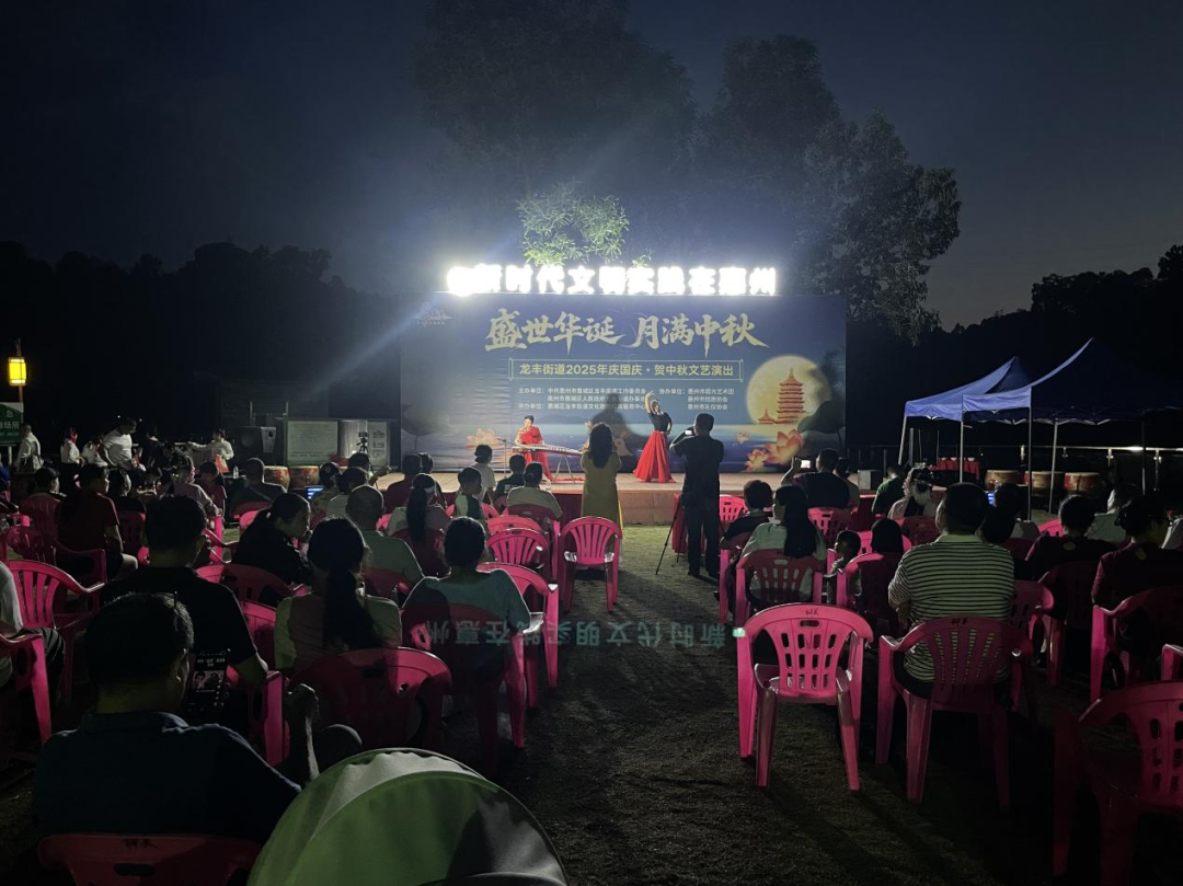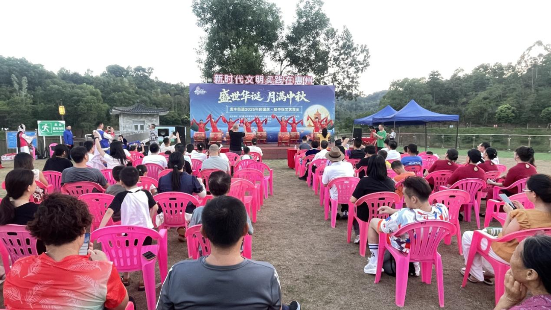 金风送爽迎华诞,皓月当空庆团圆。10月1日晚,惠州市惠城区龙丰街道“盛世华诞·月满中秋”庆国庆·贺中秋文艺演出在桃花源景区温情启幕。这场时长90分钟的文化盛宴,以群众喜闻乐见的艺术形式串联家国情怀与邻里温情,既礼赞中华人民共和国成立76周年的辉煌历程,又传承中秋佳节的文化底蕴,为辖区居民绘就“国泰民安、邻里和睦”的幸福画卷。