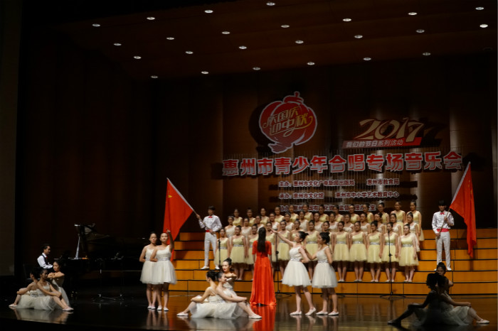 为庆祝祖国生日,迎接党的十九大胜利召开,唱响正能量,由惠州市文化广电新闻出版局、惠州市教育局主办,惠州市文化馆、惠州市中小学艺术教育中心承办的“庆国庆·迎中秋”2017年惠州市青少年合唱专场音乐会于2017年10月2日晚在惠州市文化艺术中心歌剧厅落下帷幕!来自我市1000余名市民群众齐聚一堂,用歌声欢庆“双节”的到来。