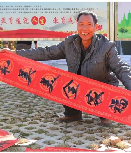 惠州市文化馆文化志愿者(中国书法家协会会员)杨会长说“此次到基层,我们的目的就是为当地的群众现场送福利,现场写对联,这是惠州文化馆文化馆惠民的一项活动,也是我们这些老年朋友老有所乐的一次体验。”