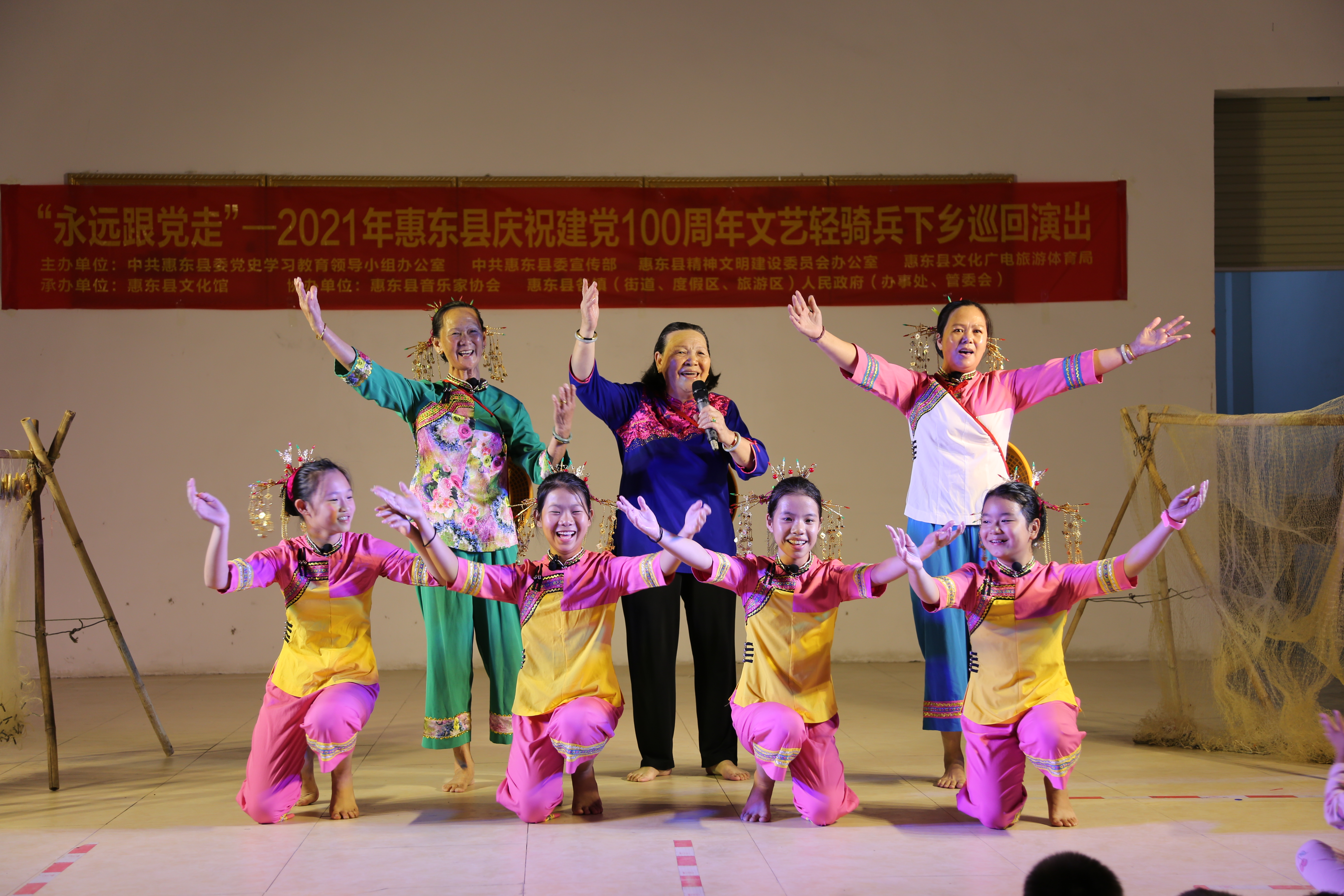 为庆祝中国共产党成立100周年,全面贯彻落实党的十九大精神和习近平新时代中国特色社会主义思想,进一步激发全县人民的爱国、爱党热情,引导广大群众继承和弘扬爱国主义光荣传统,坚定跟党走中国特色社会主义道路的理想信念。11月4日,由惠东县委宣传部、县文广旅体局、县文明办主办,县文化馆承办、县音协协办主题为“永远跟党走”2021年惠东县庆祝建党100周年文艺轻骑兵下乡巡回演出(巽寮站)分别在赤砂村小学和渔业村举行,演员们用饱满的热情给观众们带来了一场视听盛宴。