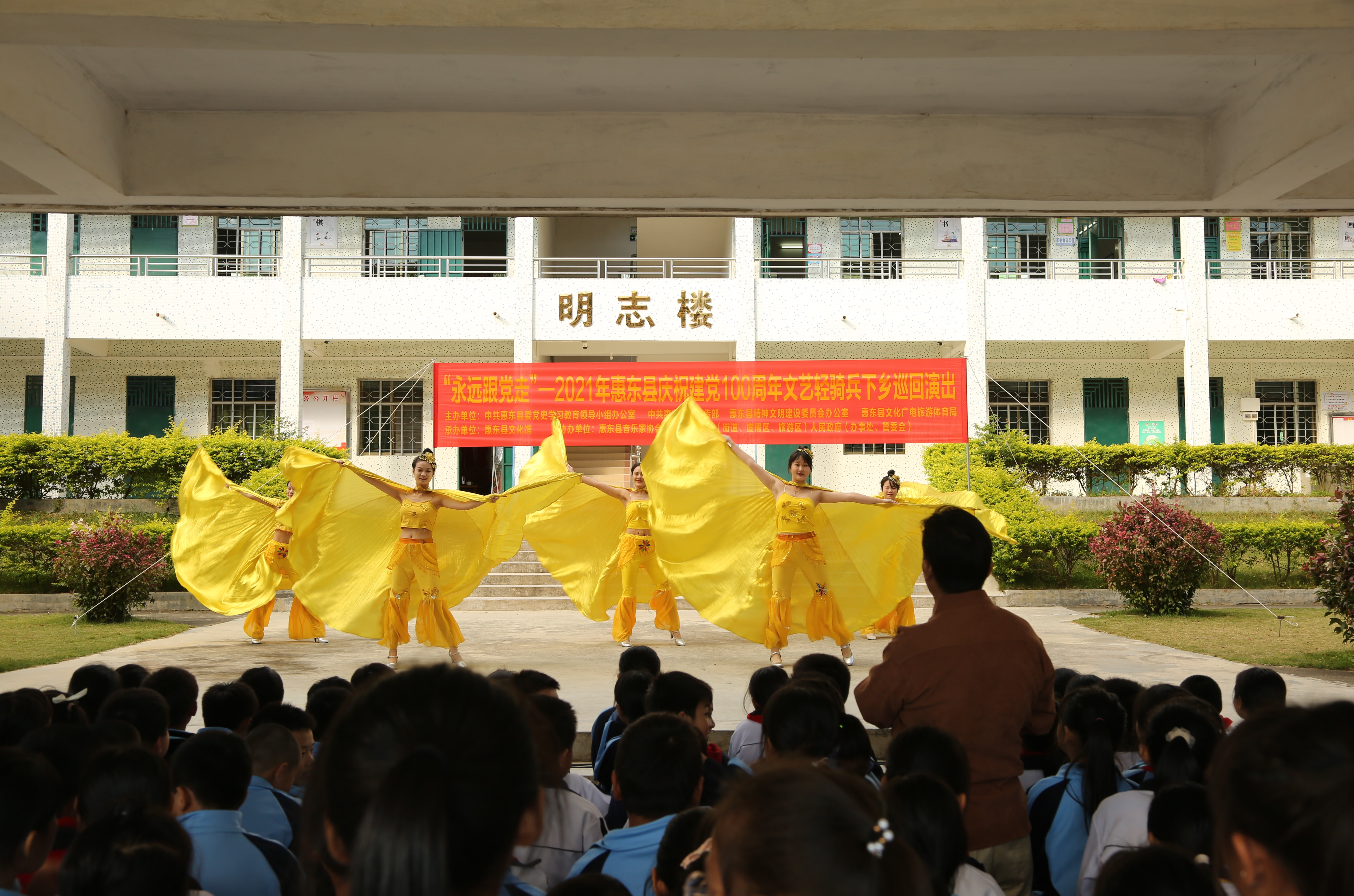 为庆祝中国共产党成立100周年,全面贯彻落实党的十九大精神和习近平新时代中国特色社会主义思想,进一步激发全县人民的爱国、爱党热情,引导广大群众继承和弘扬爱国主义光荣传统,坚定跟党走中国特色社会主义道路的理想信念。11月8日,由惠东县委宣传部、县文广旅体局、县文明办主办,县文化馆承办、县音协协办主题为“永远跟党走”2021年惠东县庆祝建党100周年文艺轻骑兵下乡巡回演出(高潭站)分别在高潭中心小学和公梅村举行,演员们用饱满的热情给观众们带来了一场视听盛宴。