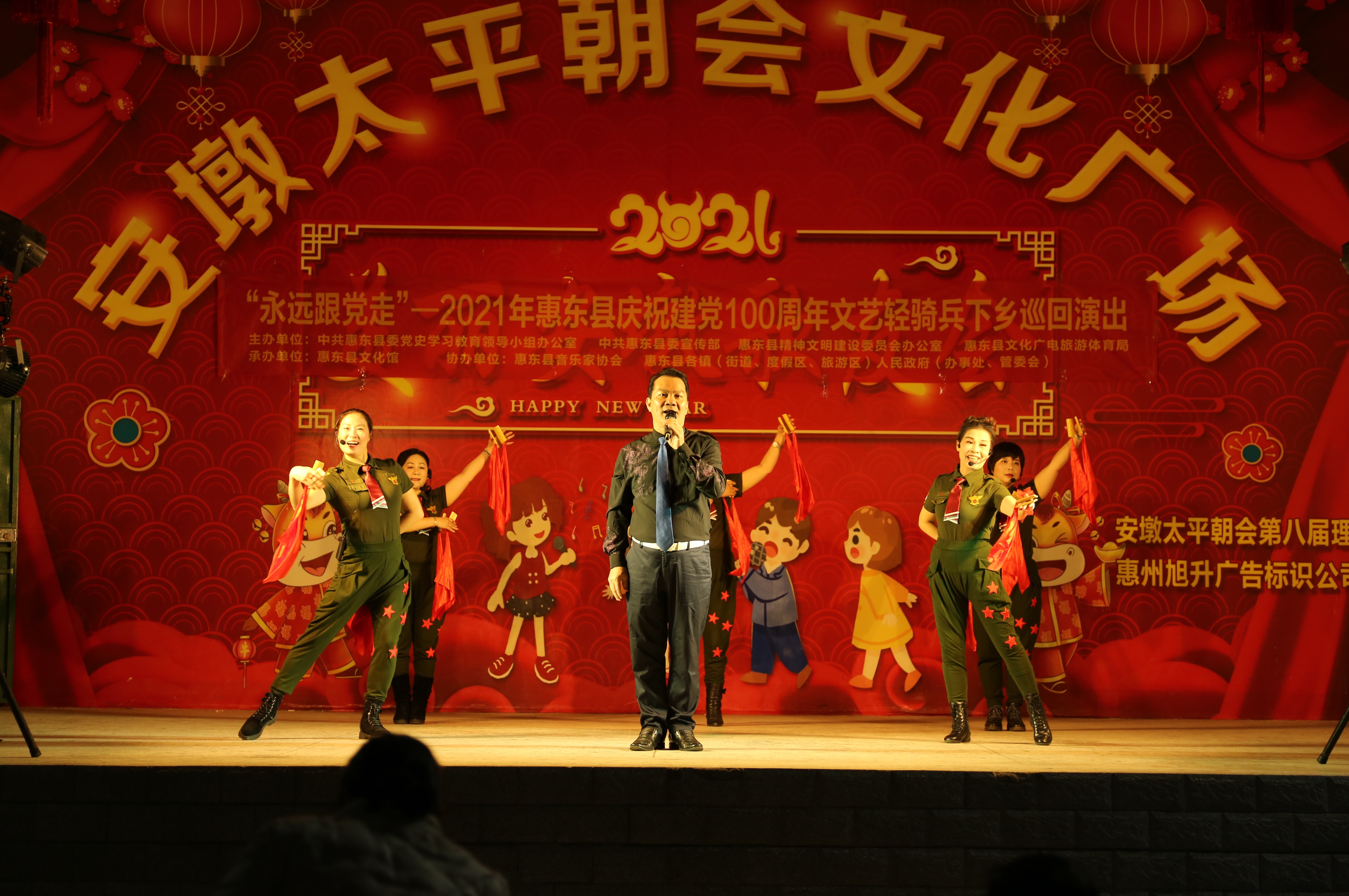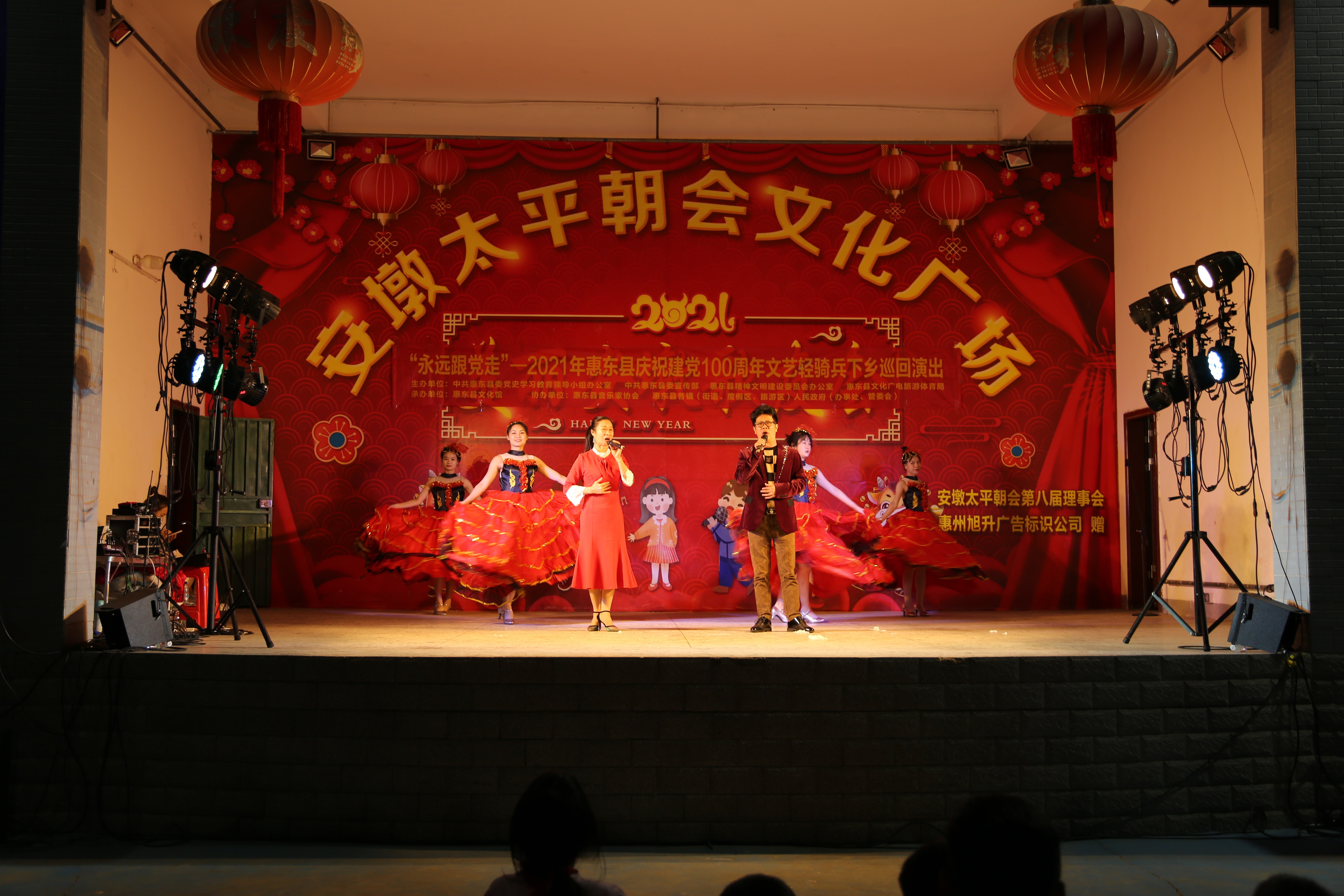 为庆祝中国共产党成立100周年,全面贯彻落实党的十九大精神和习近平新时代中国特色社会主义思想,进一步激发全县人民的爱国、爱党热情,引导广大群众继承和弘扬爱国主义光荣传统,坚定跟党走中国特色社会主义道路的理想信念。11月10日,由惠东县委宣传部、县文广旅体局、县文明办主办,县文化馆承办、县音协协办主题为“永远跟党走”2021年惠东县庆祝建党100周年文艺轻骑兵下乡巡回演出(安墩站)分别在石珠村和安墩太平文化广场举行,演员们用饱满的热情给观众们带来了一场视听盛宴。