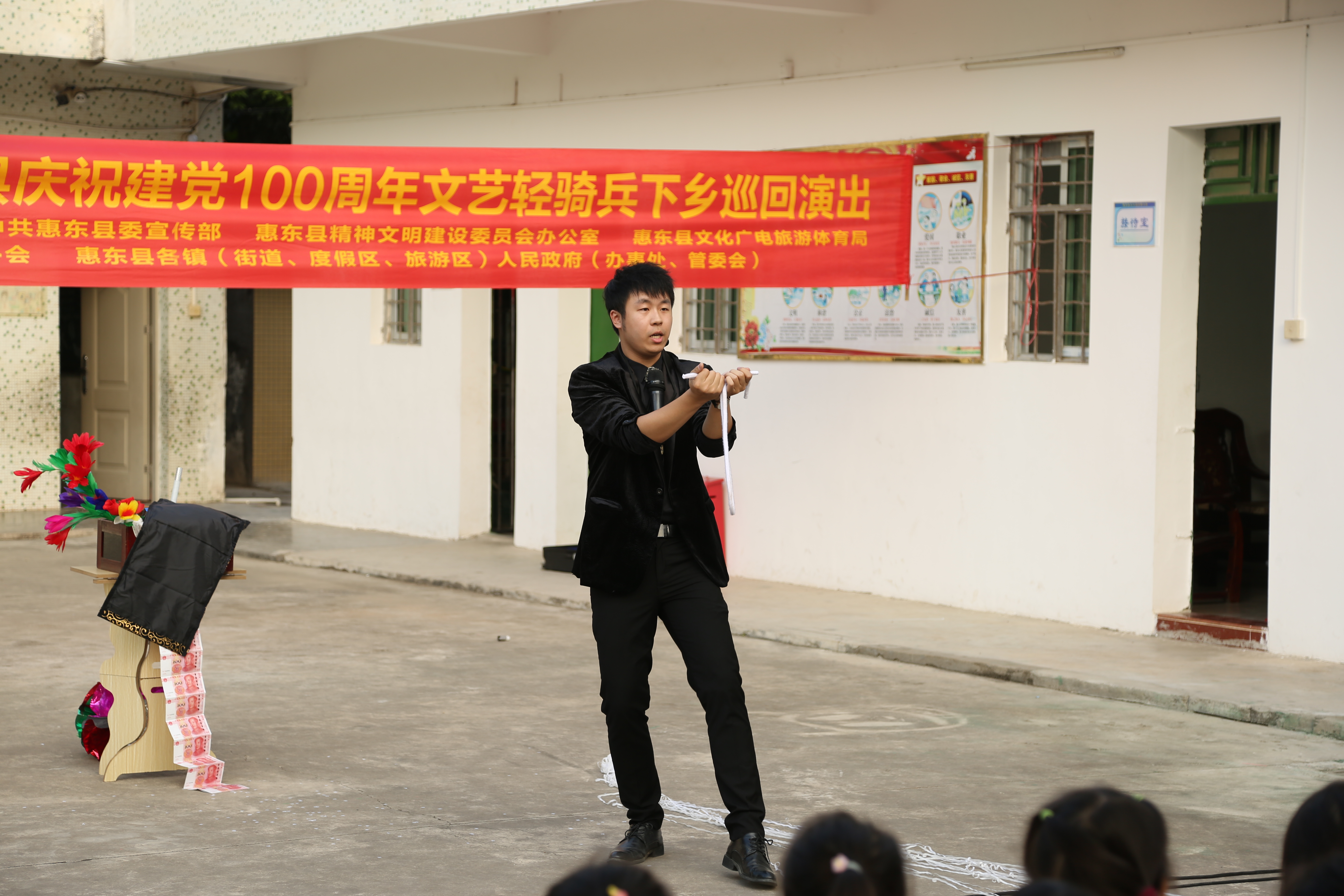 为庆祝中国共产党成立100周年,全面贯彻落实党的十九大精神和习近平新时代中国特色社会主义思想,进一步激发全县人民的爱国、爱党热情,引导广大群众继承和弘扬爱国主义光荣传统,坚定跟党走中国特色社会主义道路的理想信念。11月17日,由惠东县委宣传部、县文广旅体局、县文明办主办,县文化馆承办、县音协协办主题为“永远跟党走”2021年惠东县庆祝建党100周年文艺轻骑兵下乡巡回演出(大岭站)分别在白沙布小学和彭白村举行,演员们用饱满的热情给观众们带来了一场视听盛宴。