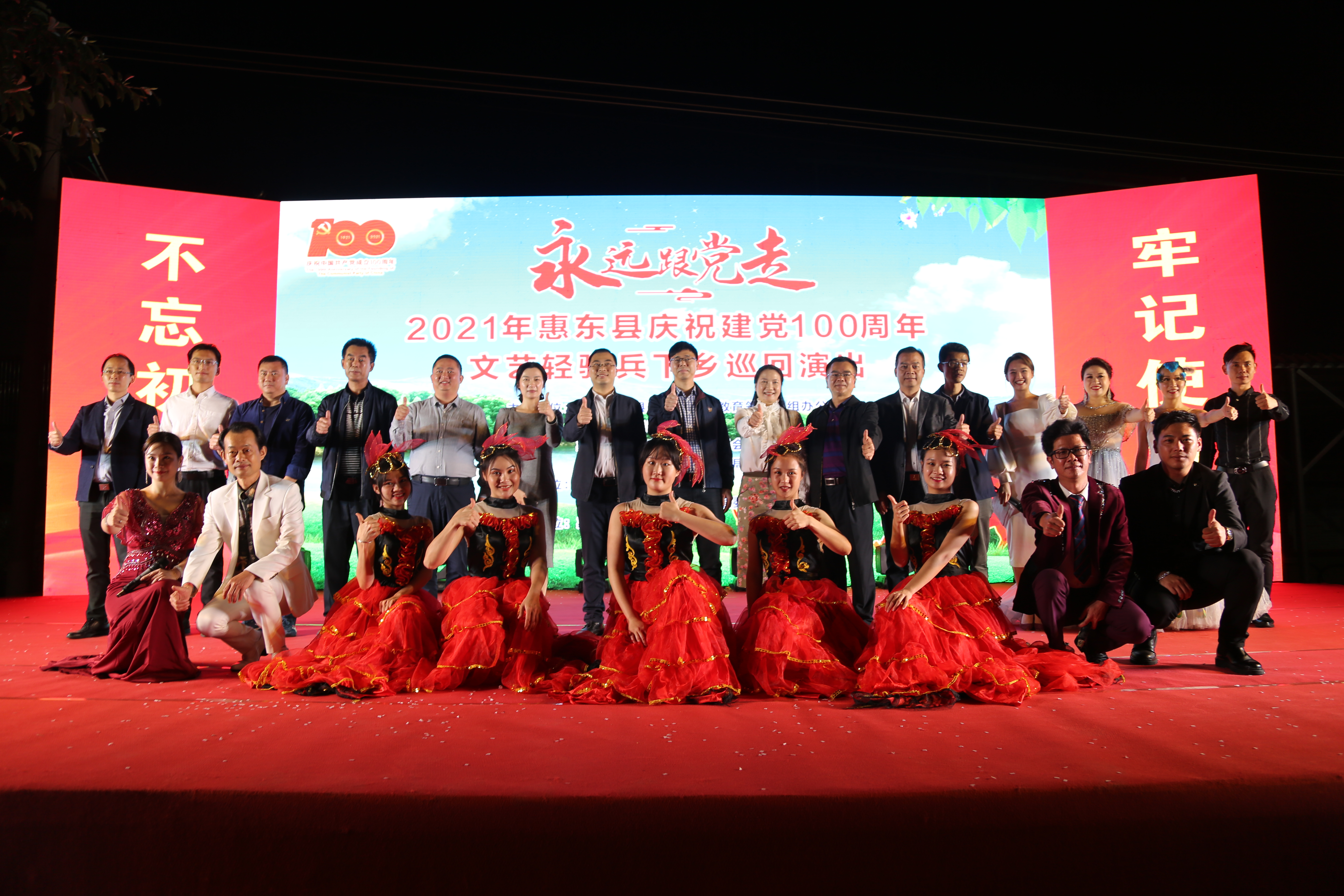 为庆祝中国共产党成立100周年,全面贯彻落实党的十九大精神和习近平新时代中国特色社会主义思想,进一步激发全县人民的爱国、爱党热情,引导广大群众继承和弘扬爱国主义光荣传统,坚定跟党走中国特色社会主义道路的理想信念。11月18日,由惠东县委宣传部、县文广旅体局、县文明办主办,县文化馆承办、县音协协办主题为“永远跟党走”2021年惠东县庆祝建党100周年文艺轻骑兵下乡巡回演出(九龙峰旅游区站)分别在田心小学和增光文化广场举行,演员们用饱满的热情给观众们带来了一场视听盛宴。