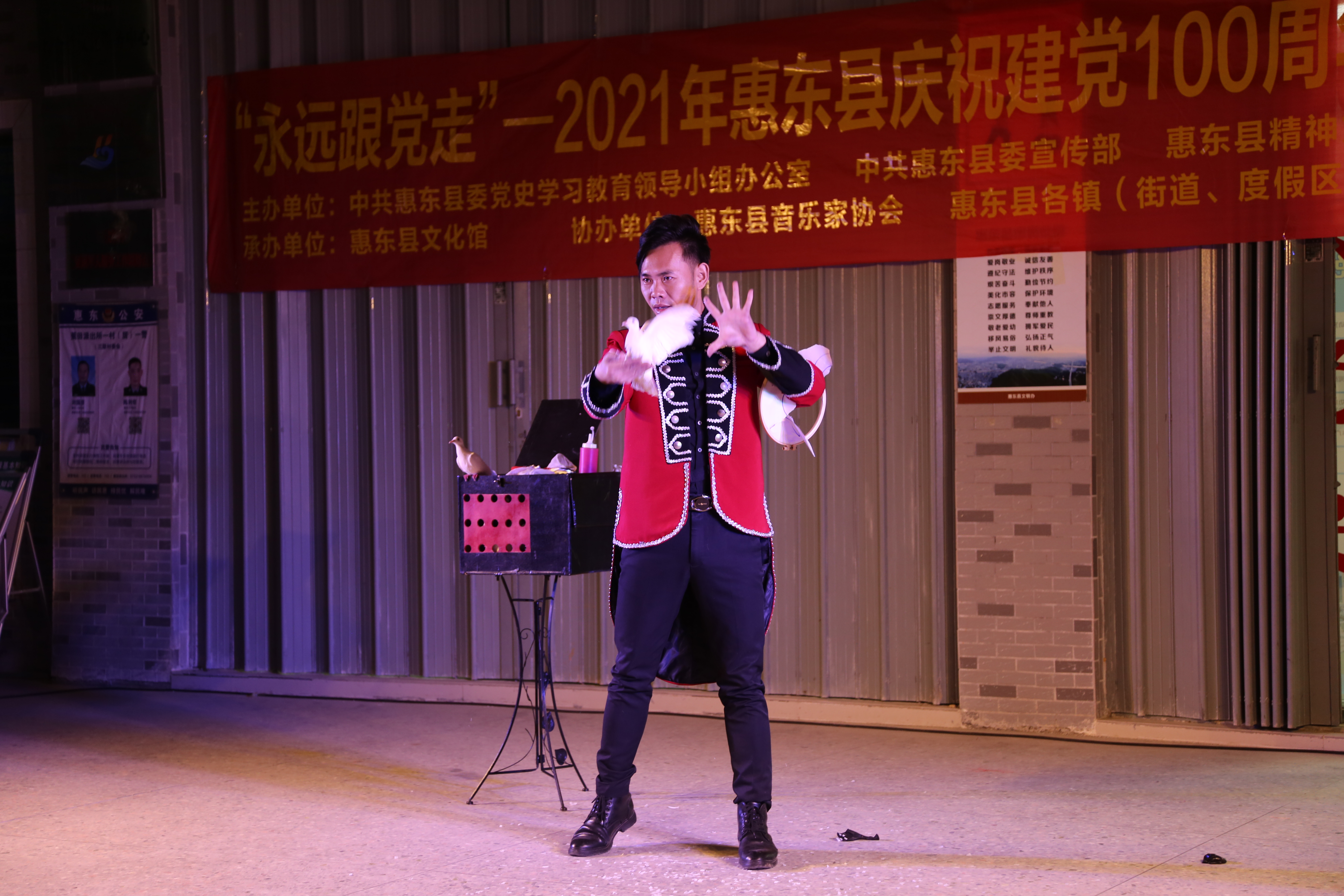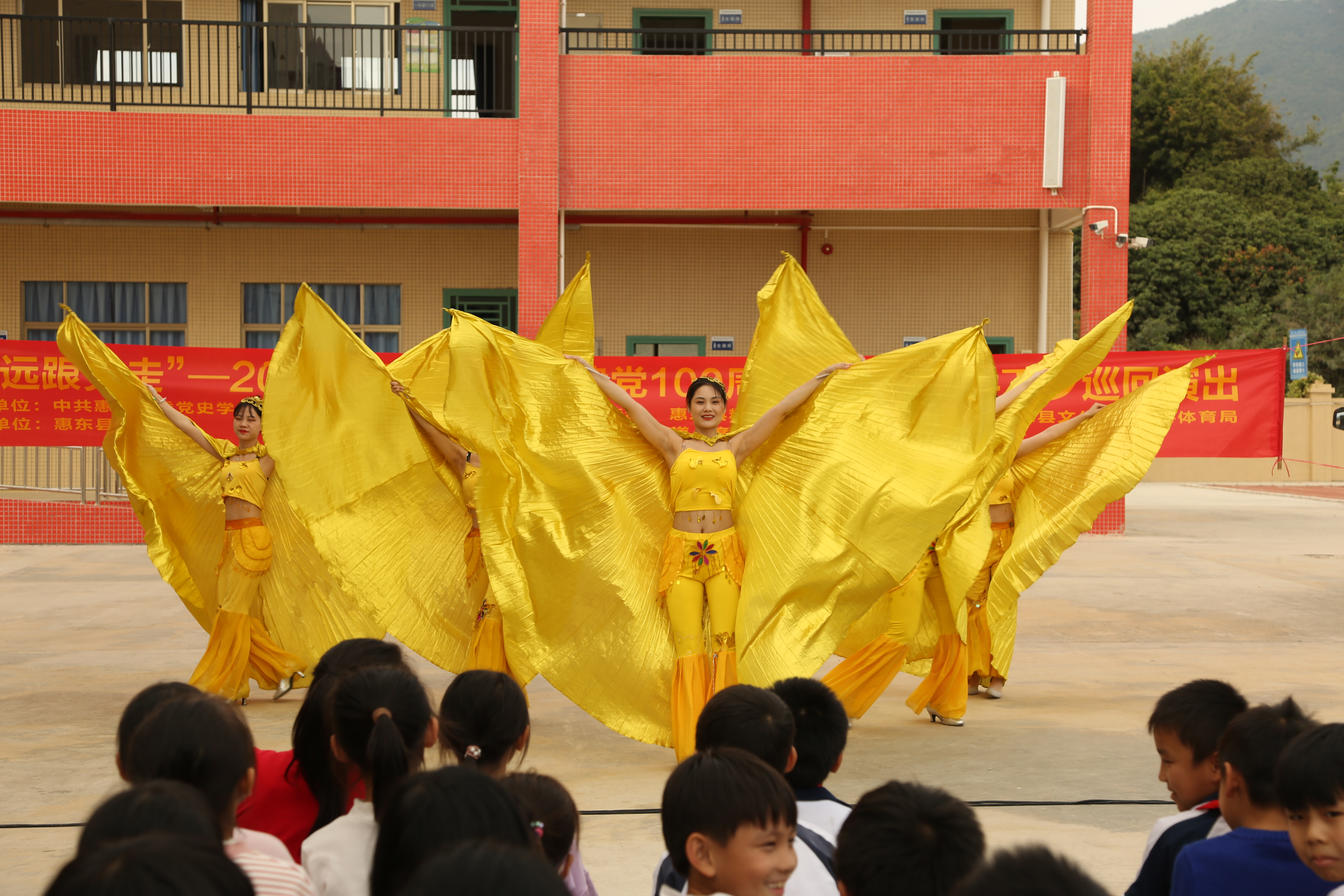 为庆祝中国共产党成立100周年,全面贯彻落实党的十九大精神和习近平新时代中国特色社会主义思想,进一步激发全县人民的爱国、爱党热情,引导广大群众继承和弘扬爱国主义光荣传统,坚定跟党走中国特色社会主义道路的理想信念。11月19日,由惠东县委宣传部、县文广旅体局、县文明办主办,县文化馆承办、县音协协办主题为“永远跟党走”2021年惠东县庆祝建党100周年文艺轻骑兵下乡巡回演出(平山站)分别在碧山小学和三联村举行,演员们用饱满的热情给观众们带来了一场视听盛宴。