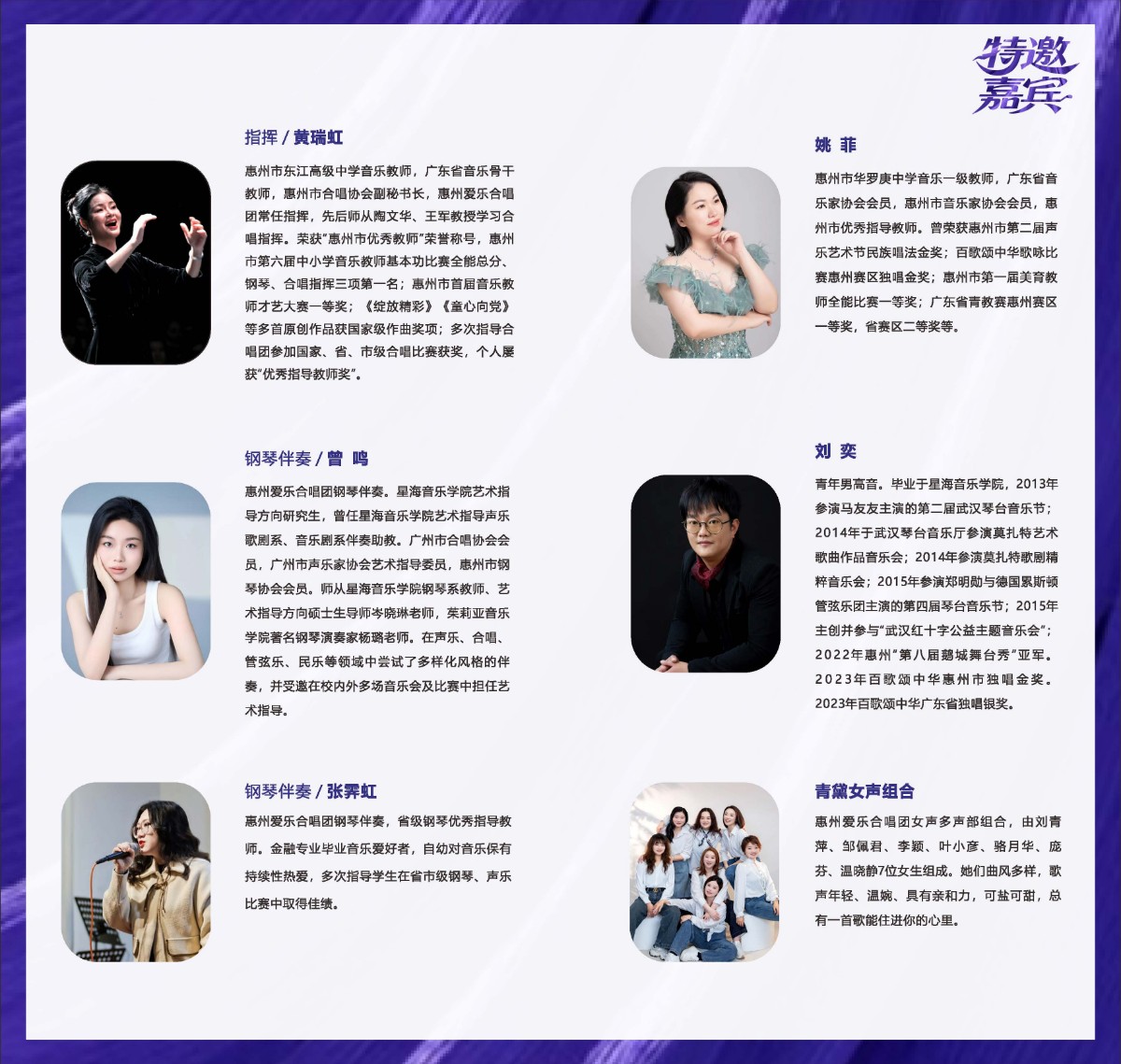 这场合唱艺术沙龙中,你会听到以通过混声合唱、女声合唱、小组表演唱等多种形式演绎的国内经典影视金曲和合唱作品,这金秋九月,和惠州大爱乐们一起共同感受合唱和声的和谐与魅力吧~!