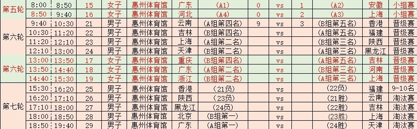 10月18日下午赛程安排